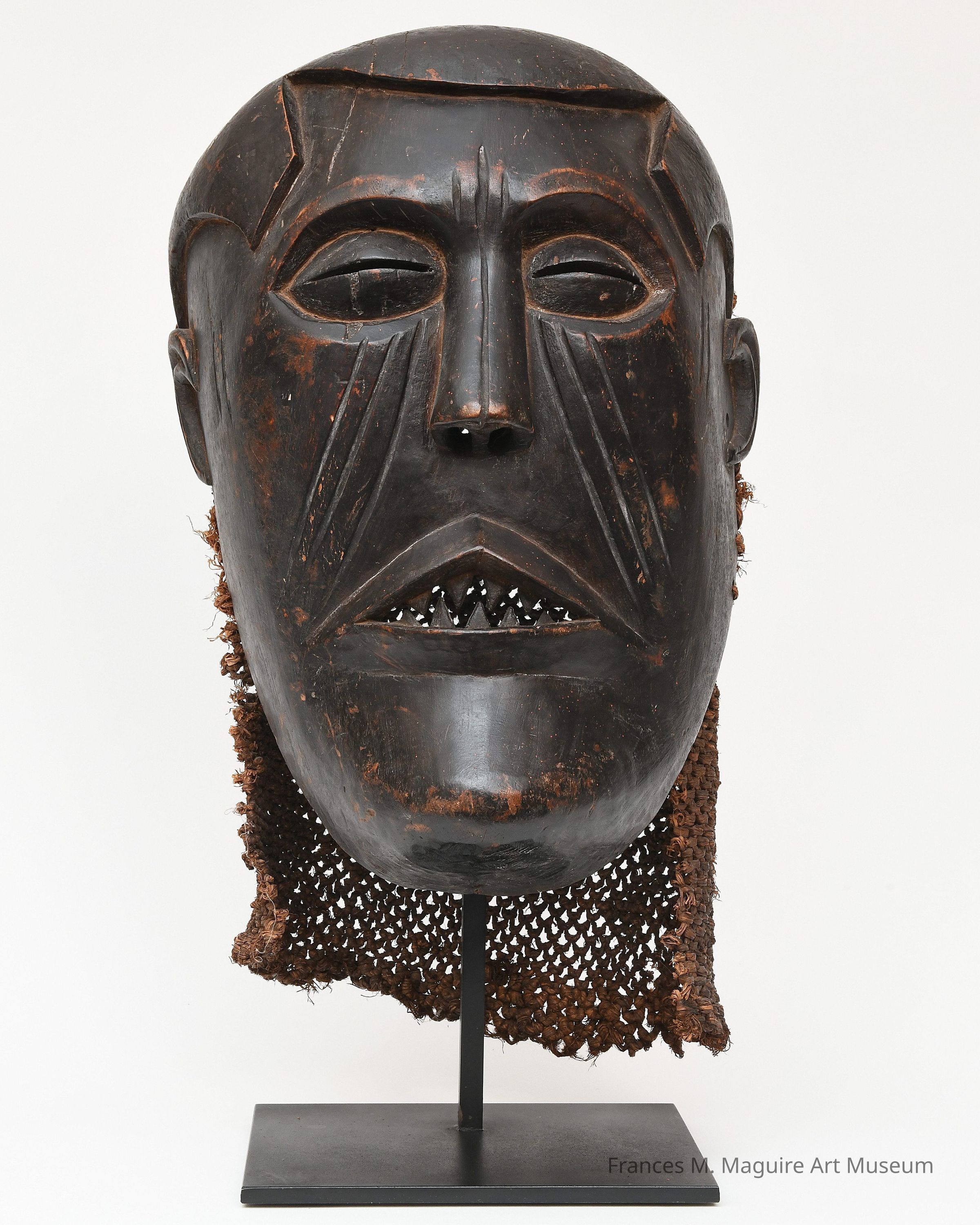 Male mask from the Kuba or Dengese people of the Democratic Republic of the Congo. Made of wood with coarse netting in the back.Made/Created