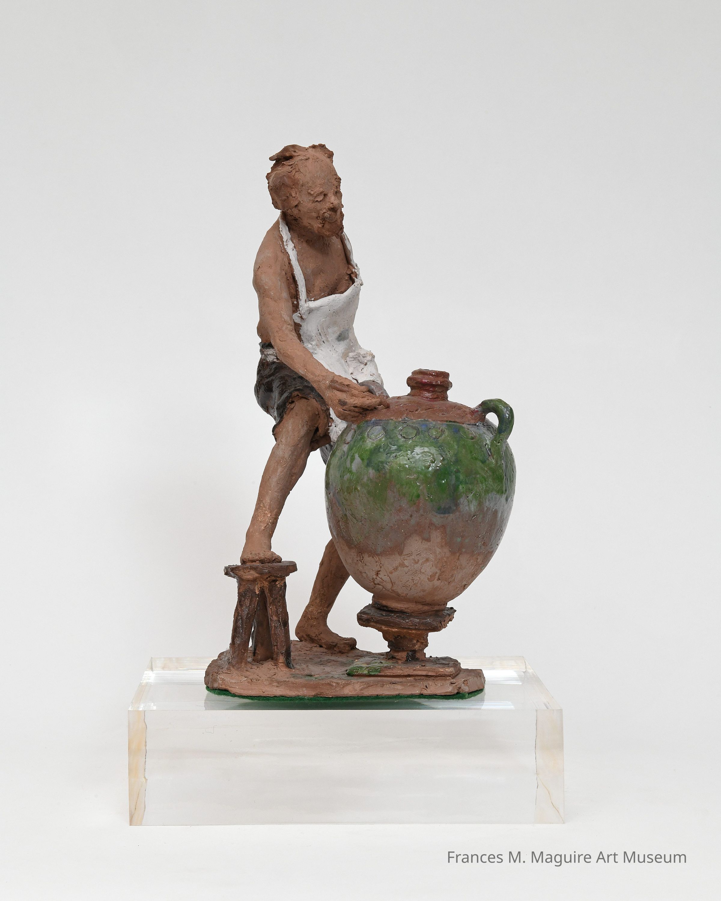 Painted terracotta sculpture of a male potter.
