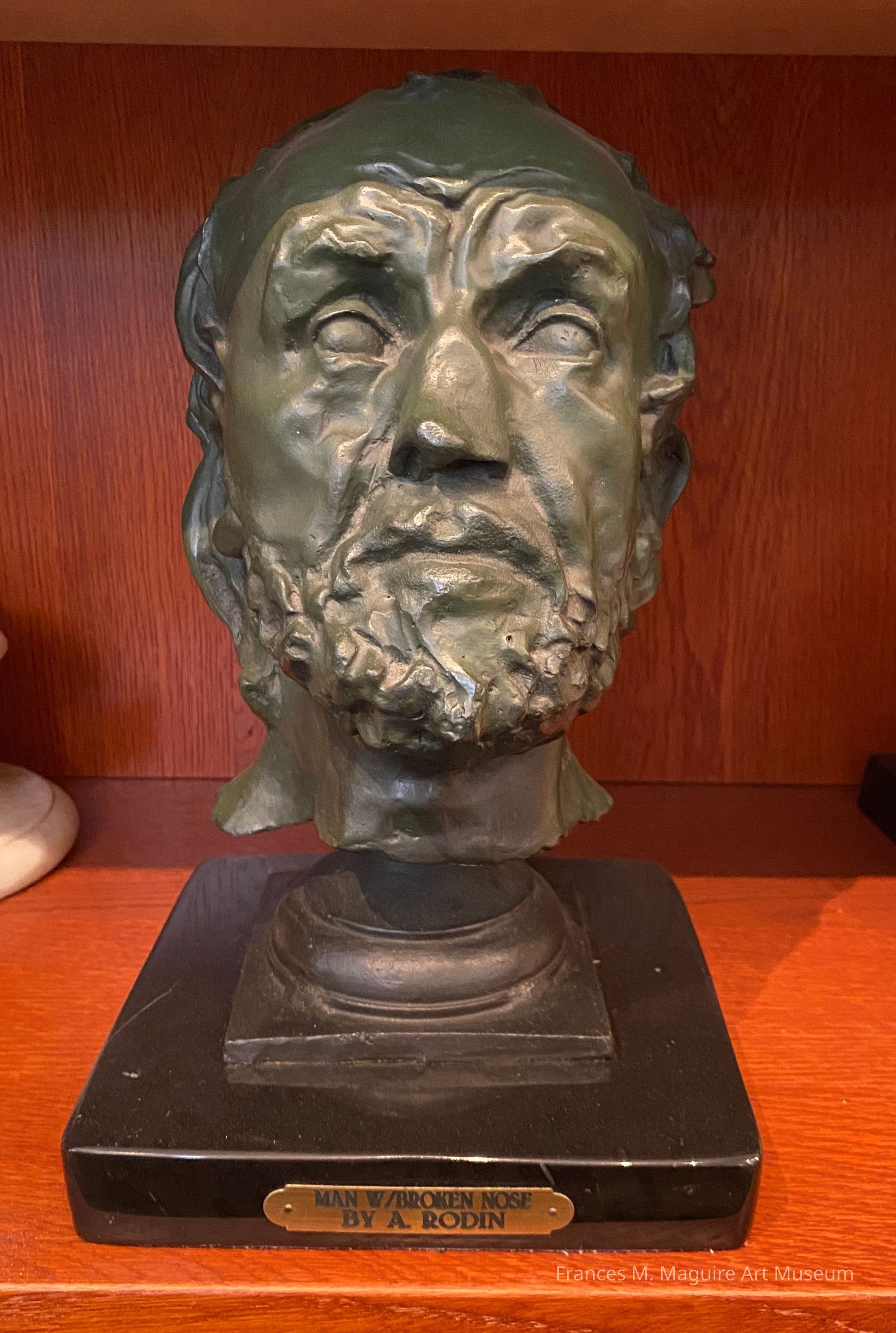 Bronze cast of bust by Auguste Rodin mounted on a marble base. Source of mold is unknown, and no foundry mark is visible.
