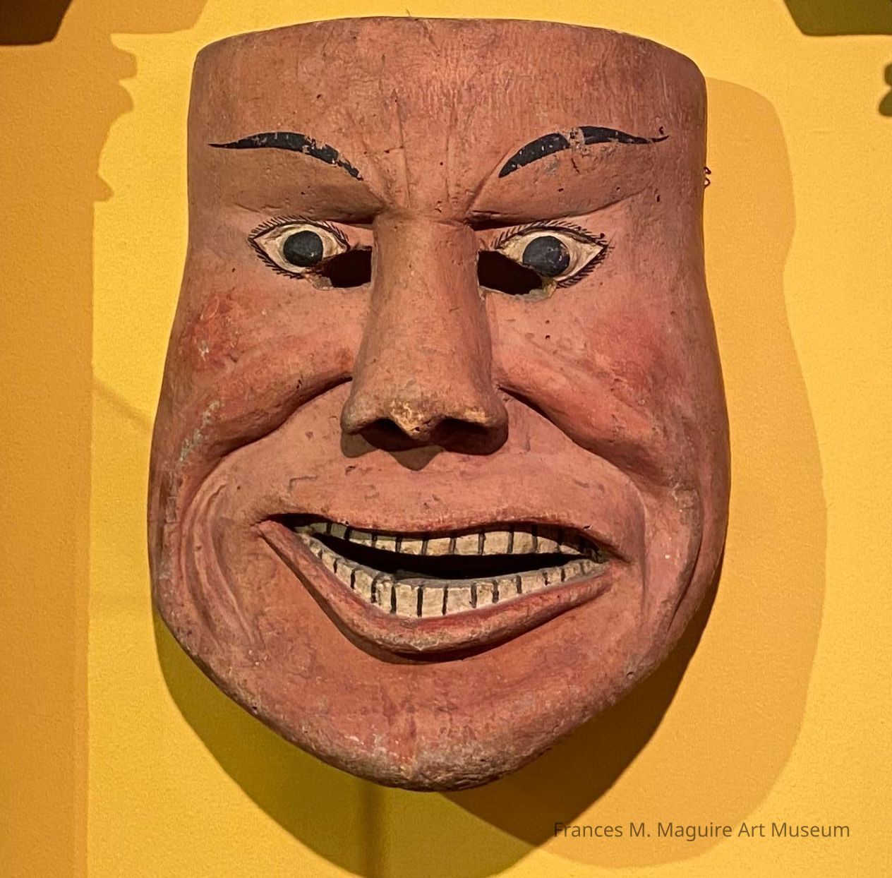 Early-20th c. Mexican mask of a man with a large grin.