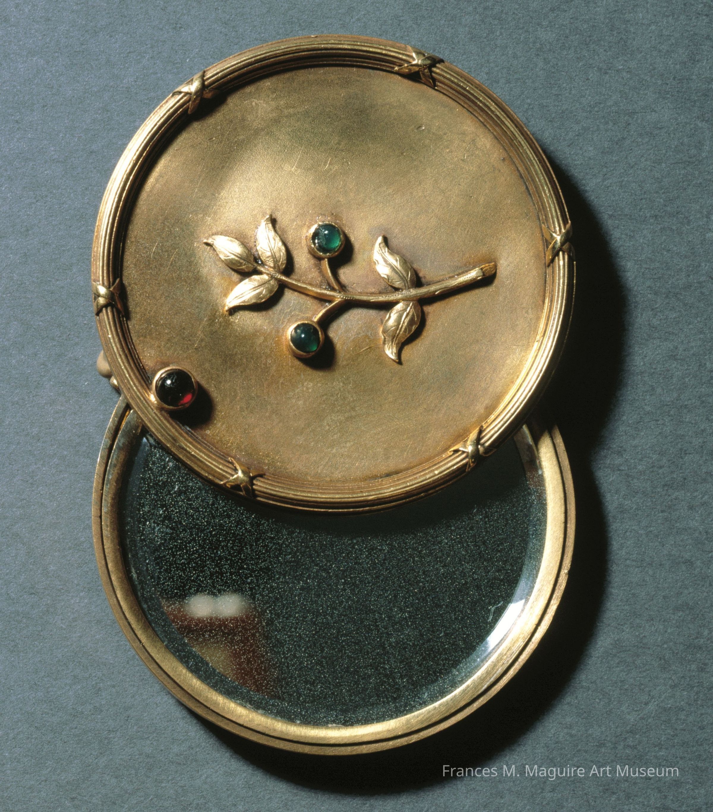 Russian silver gilt pendant with mirror, emeralds, and garnetMade/Created