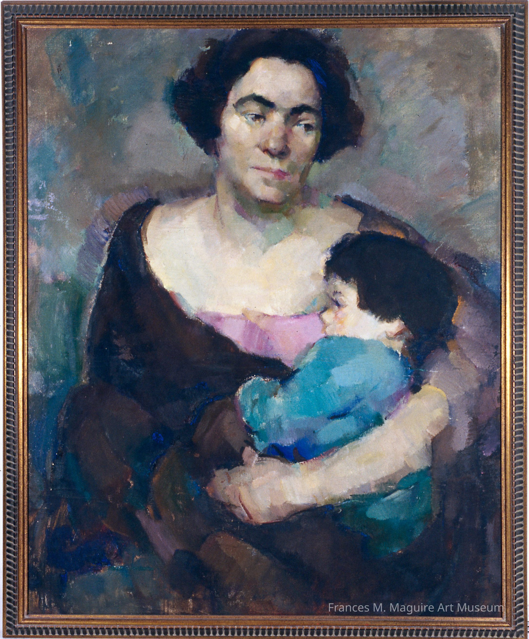 20th-c. oil painting of a mother and child by Margaret Gest.Made/Created