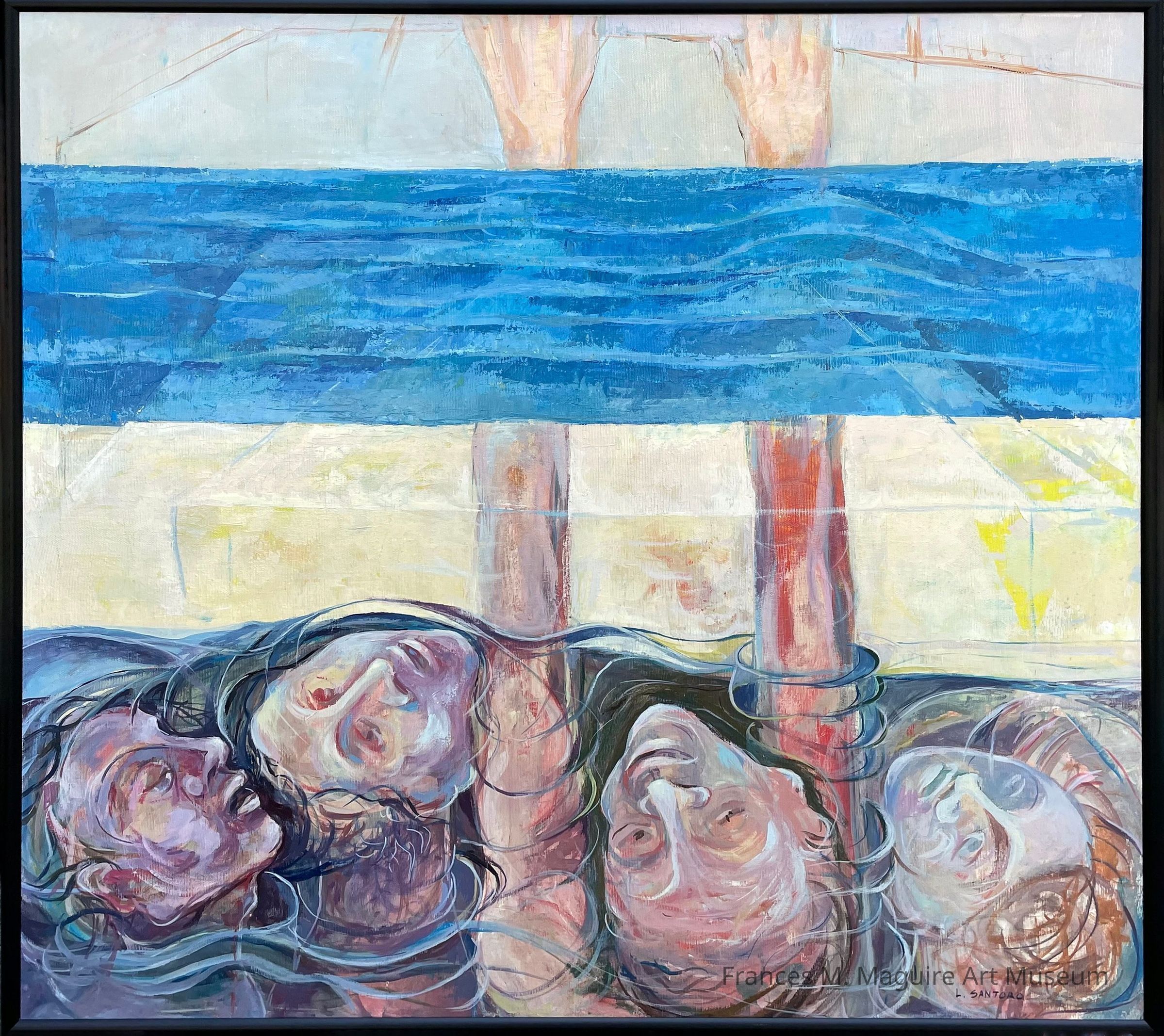 20th-c. oil painting titled created by the artist as an "omaggio agli emigranti" or "homage to emigrants."Made/Created