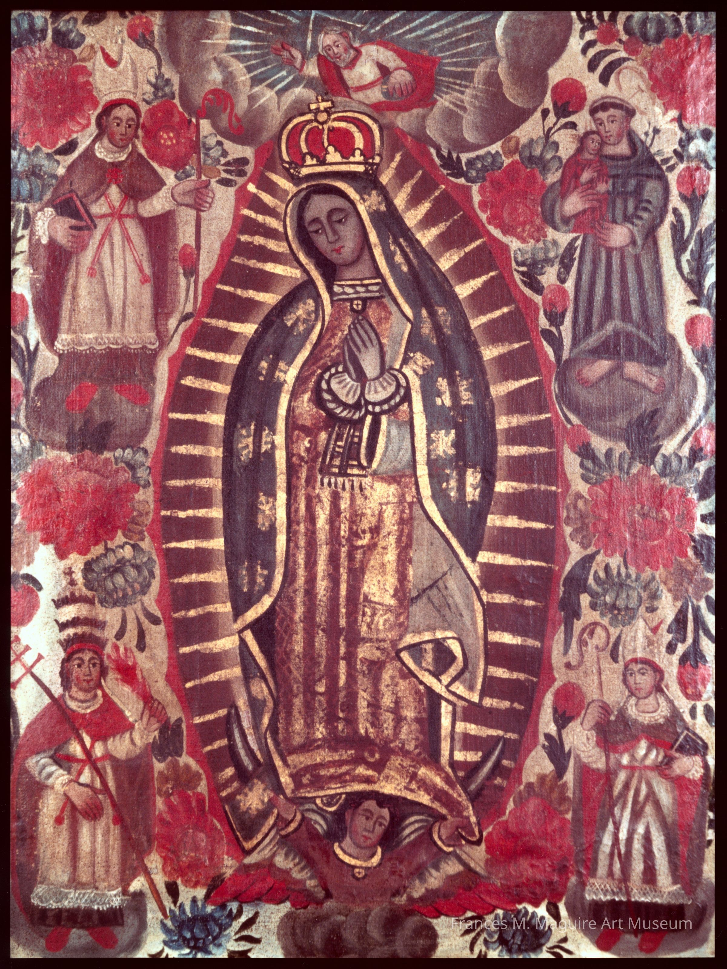 Mexican retablo painting of Our Lady of Guadalupe.