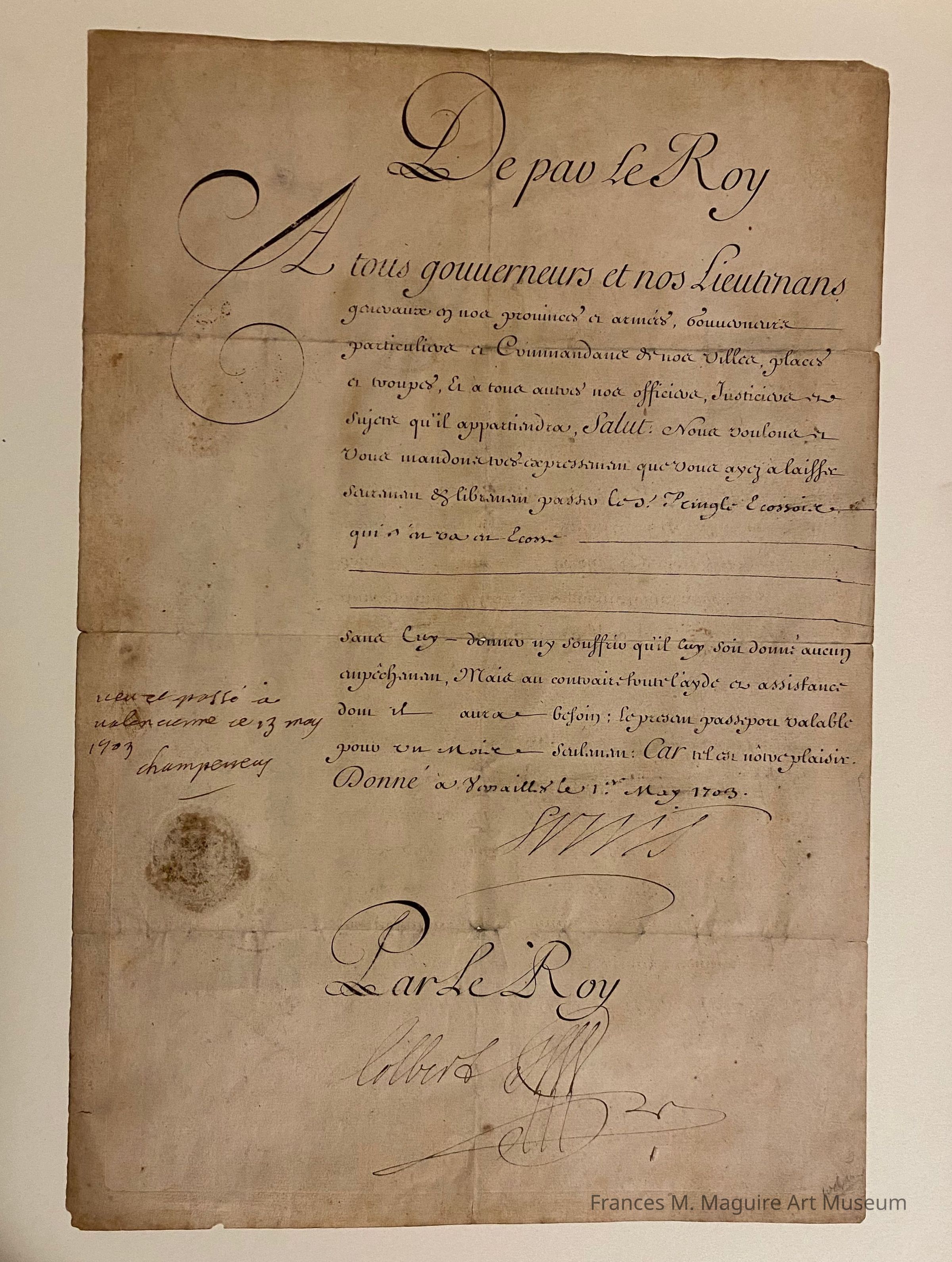 18th-c. passport given by French King Louis XIV to a Scotsman seeking to return to Scotland.Made/Created