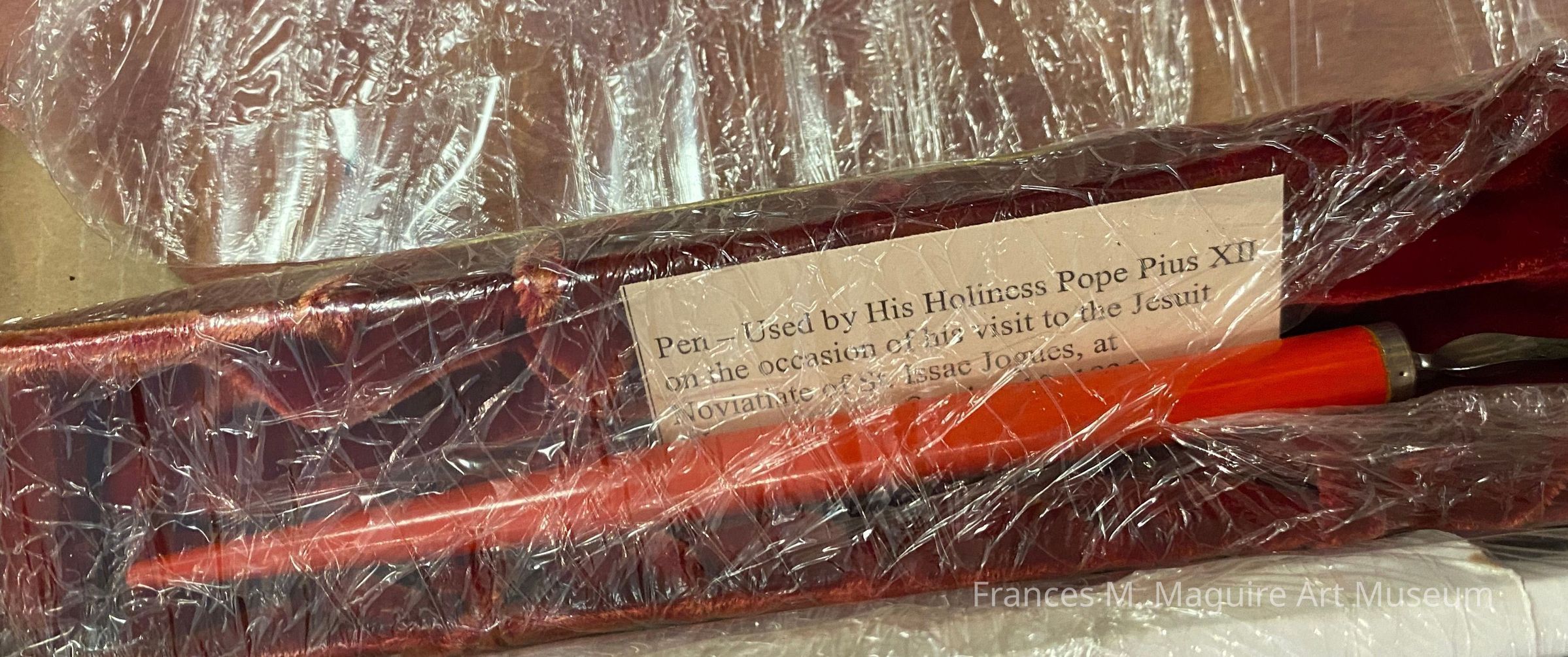 Pen used by Pope Pius XII on the occasion of his 1936 visit to the Jesuit Novitiate of St. Isaac Jogues at Wernersville, PA.Interpretative Labels