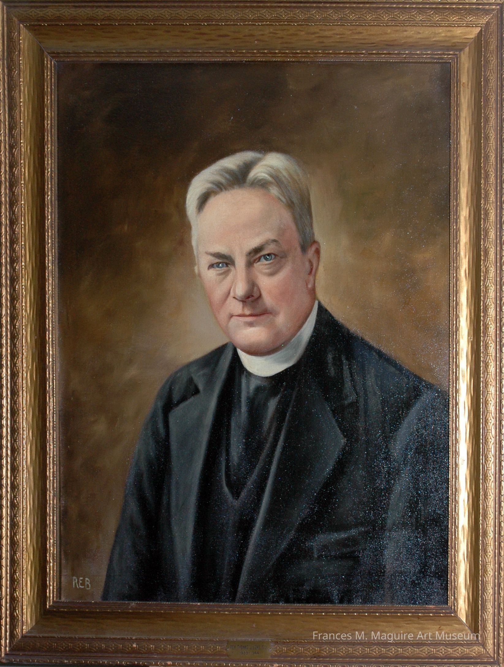 Portrait of Rev. Thomas J. Love, S.J., who served as president of SJU (then SJC) from 1939–1944. This portrait was replaced in the presidential portrait collection by another painting in 1957.Made/Created