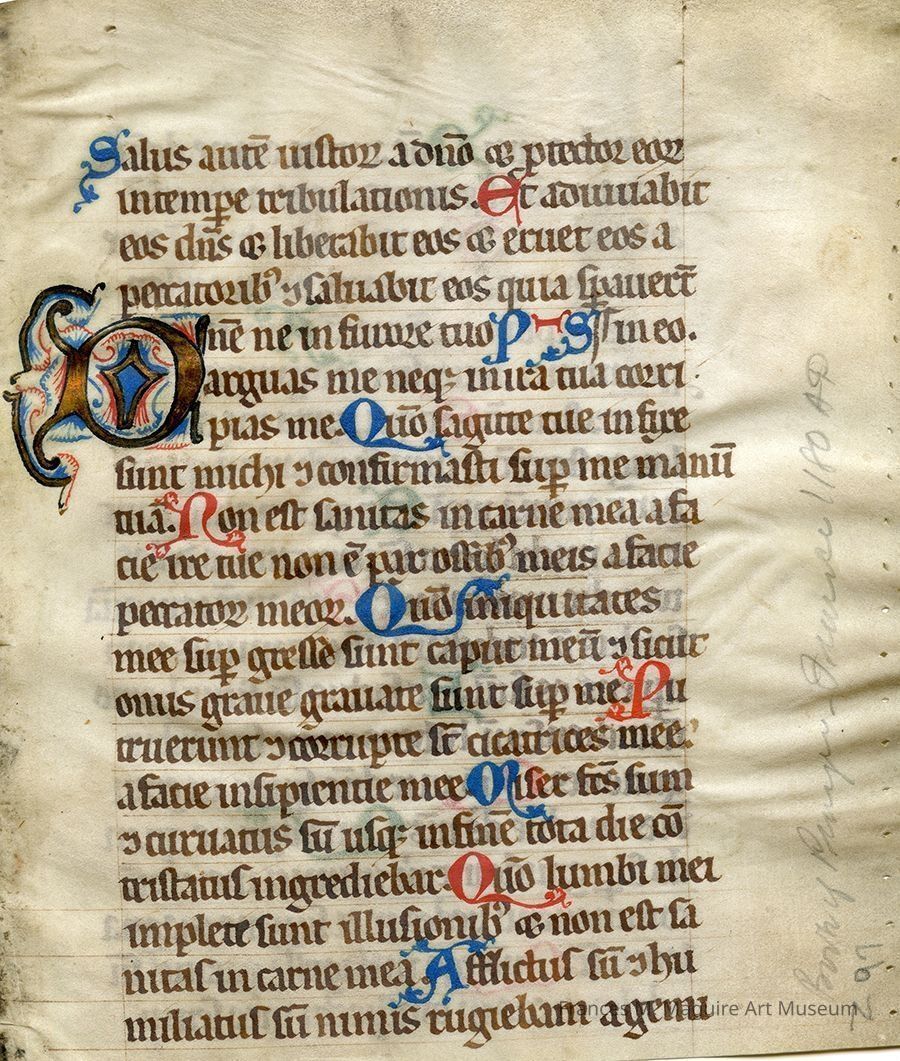 12th-c. French illuminated manuscript page of Psalm 36. The page is double-sided, with the other side containing Psalm 37.Made/Created