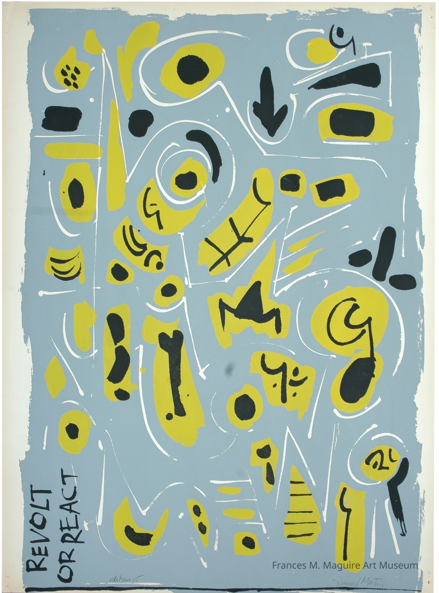 Print titled "Revolt or React" from a series of 15 color serigraph prints.Artwork Details