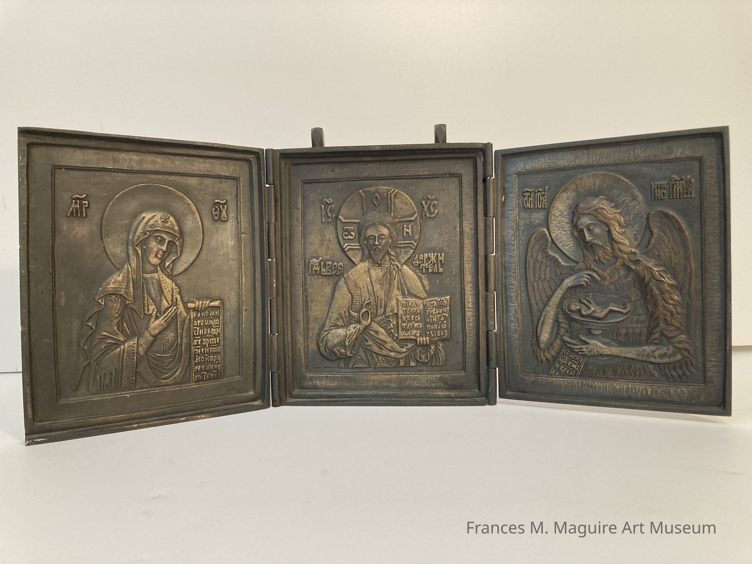 Triptych Icon Depicting Jesus, the Blessed Virgin Mary, and St. John the Baptist.Dimensions