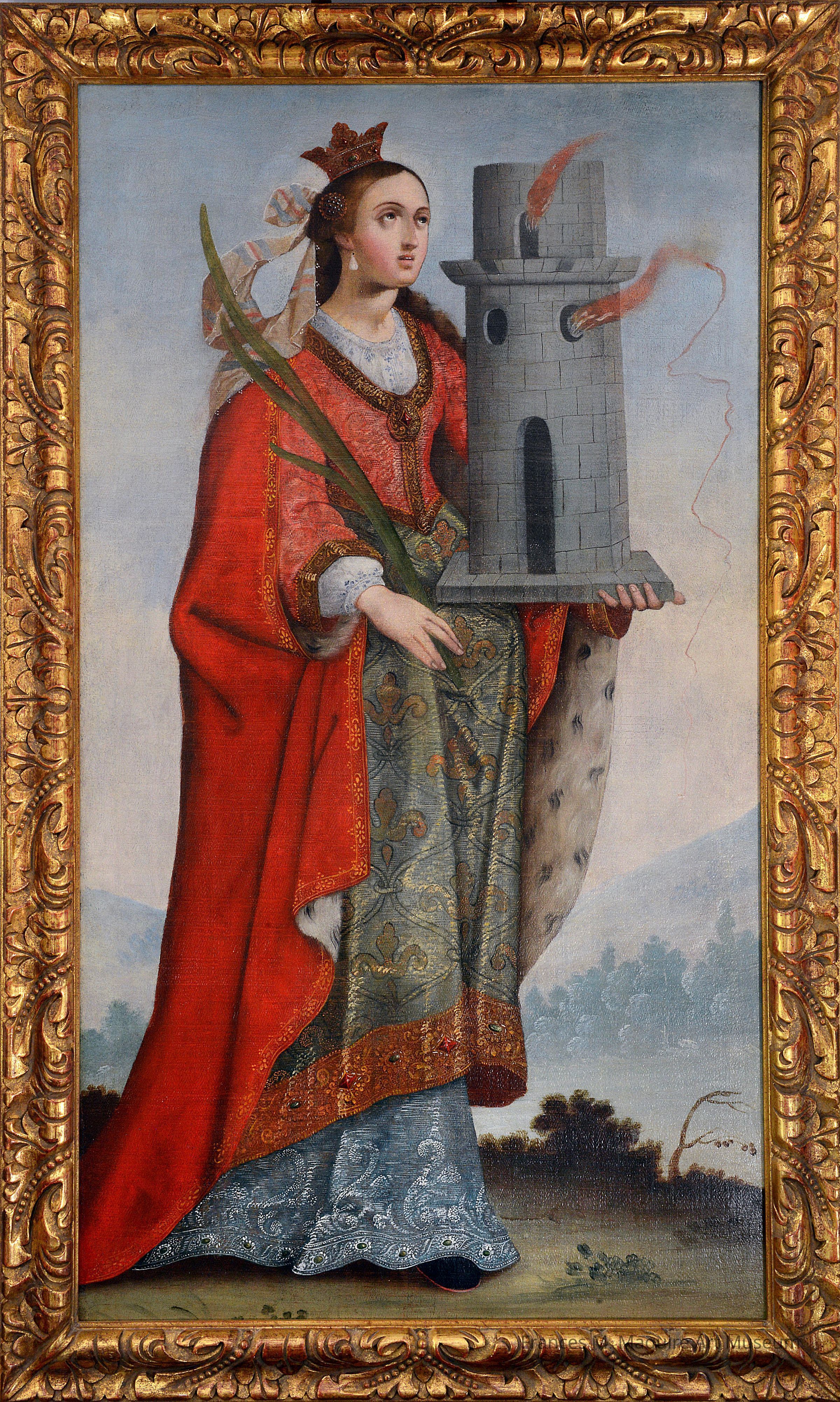 Spanish Colonial painting of Saint Barbara, late-17th c., Bolivia.