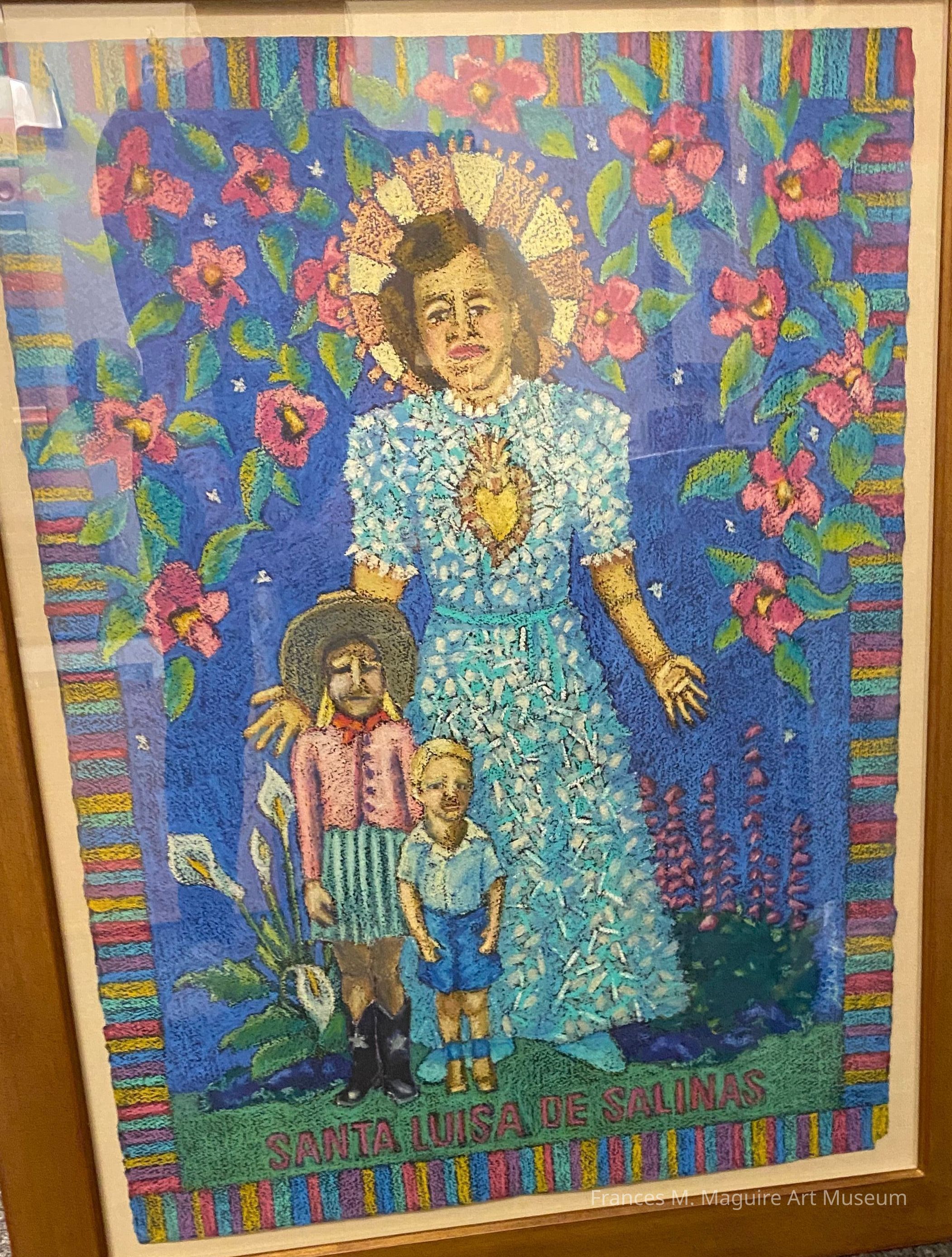Retablo of Santa Luisa de Salinas standing next to two children.Dimensions