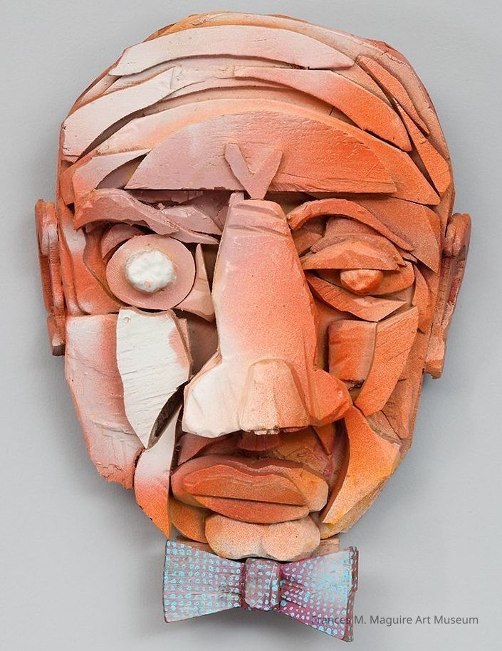 A three-dimensional self-portrait of the artist made of painted wood fragments.Made/Created