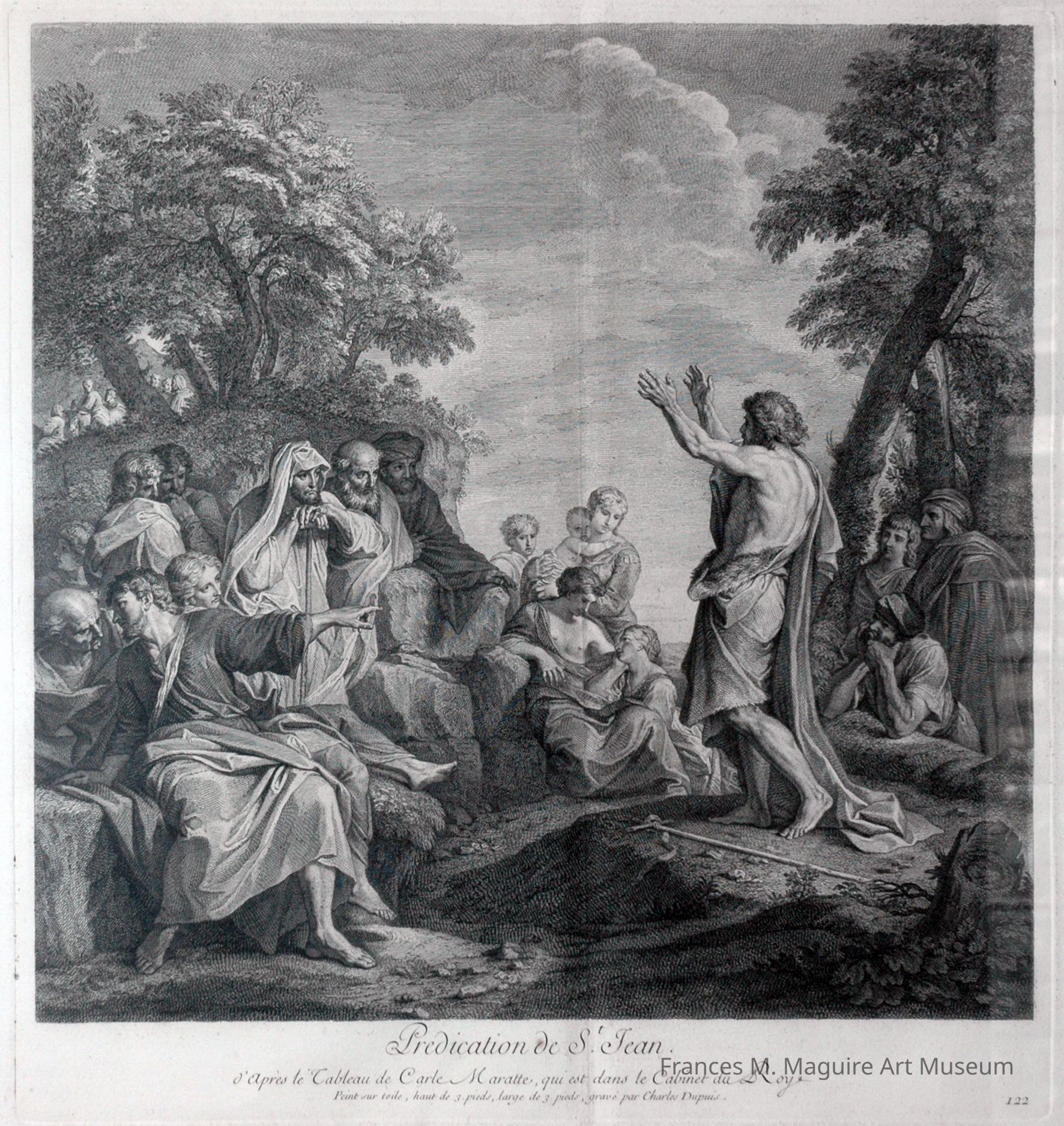 18th-c. print of St. John the Baptist delivering a sermon, after a painting by Carlo Maratti.Made/Created