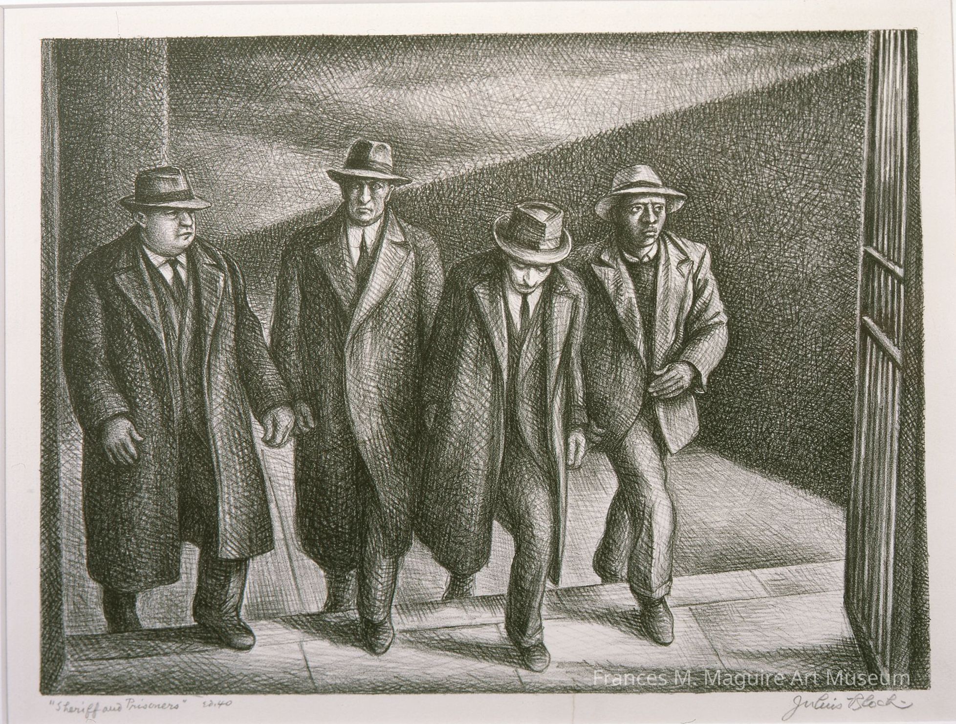 20th-c. black-and-white lithograph of four men walking. Ed. 40Made/Created