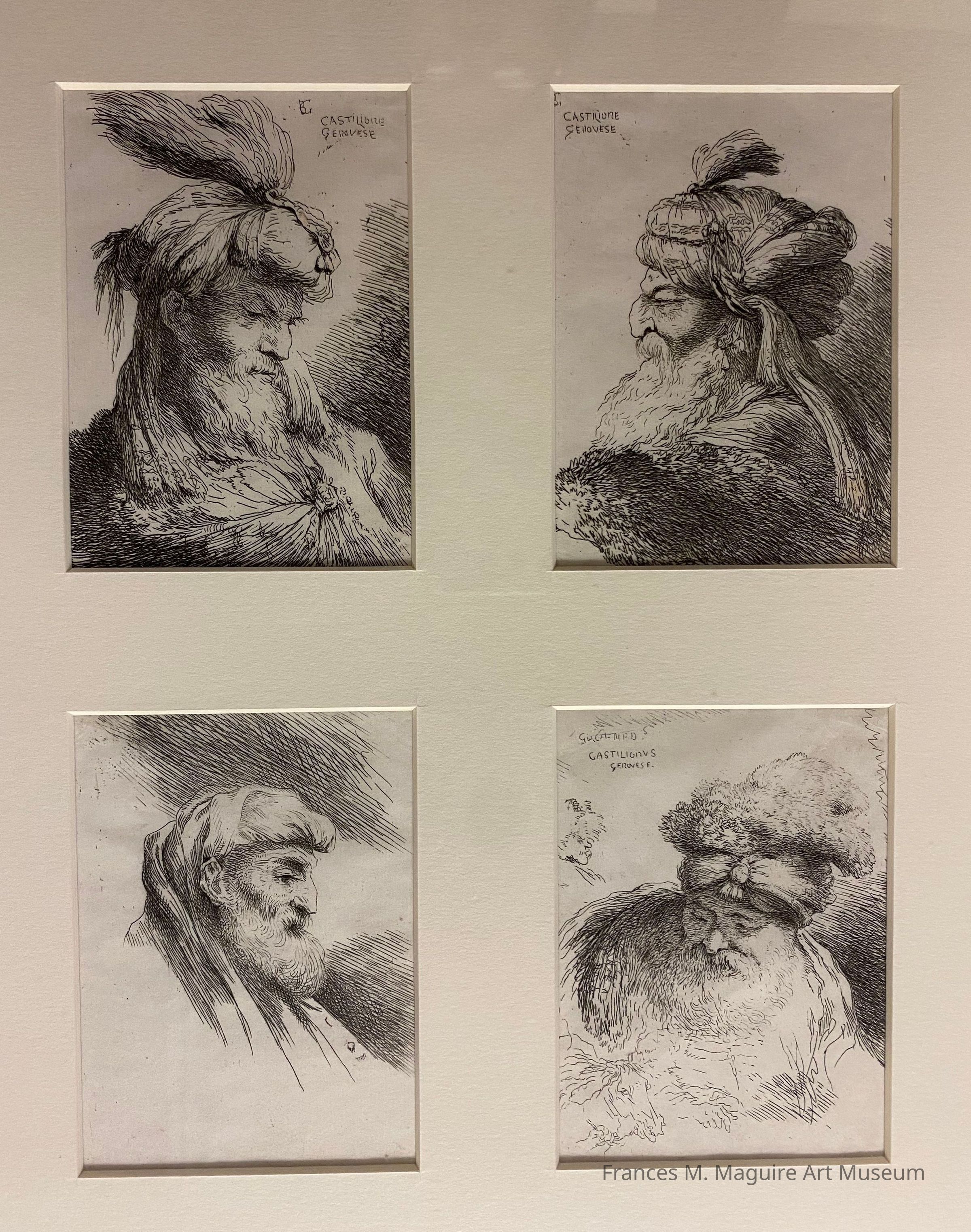 Four small 17th-c. etchings each depicting a man wearing an oriental headdress. Part of a set of sixteen etchings.Made/Created