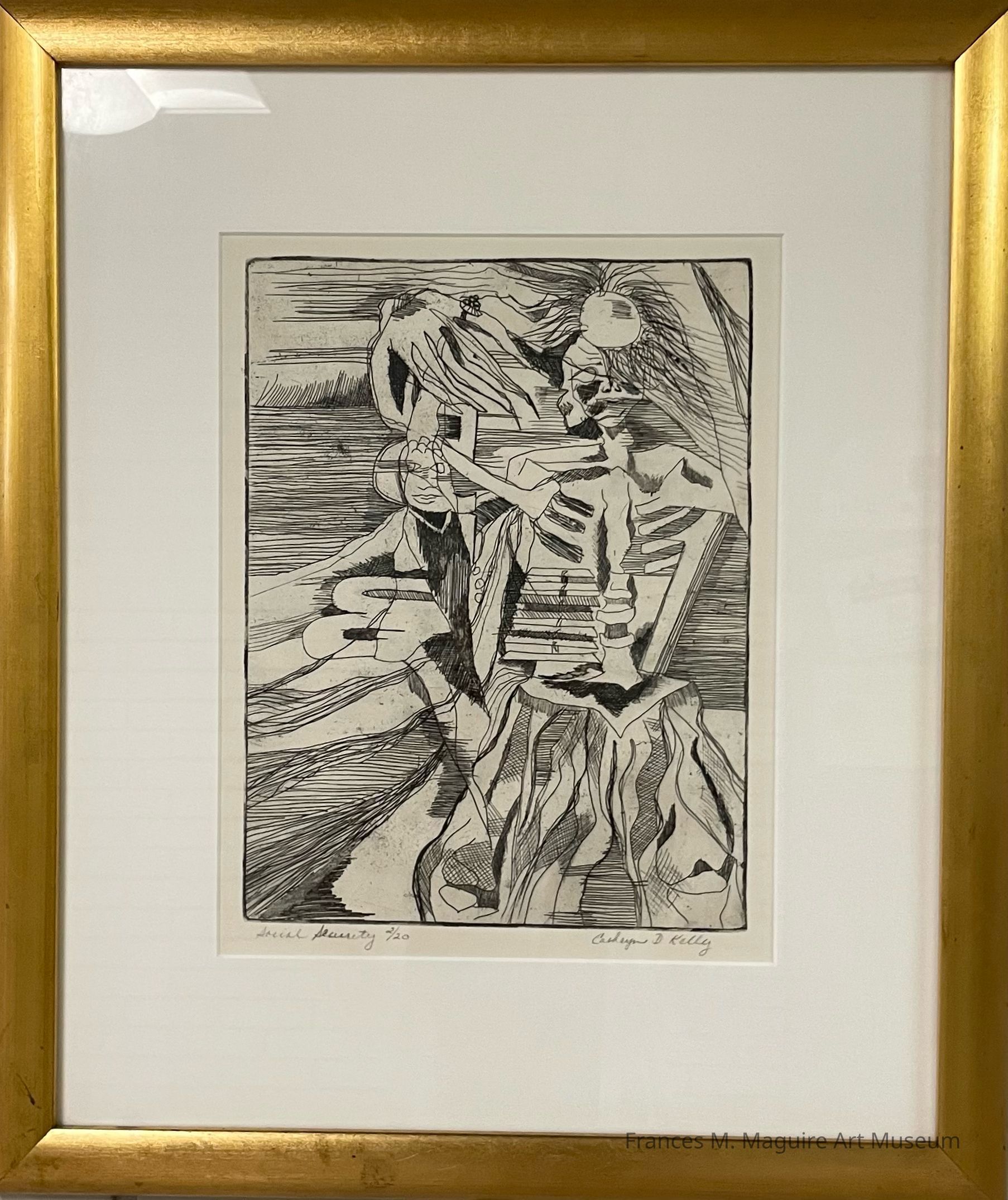 20th-c. black-and-white lithograph of a skeletal figure. Ed. 2/20.Made/Created