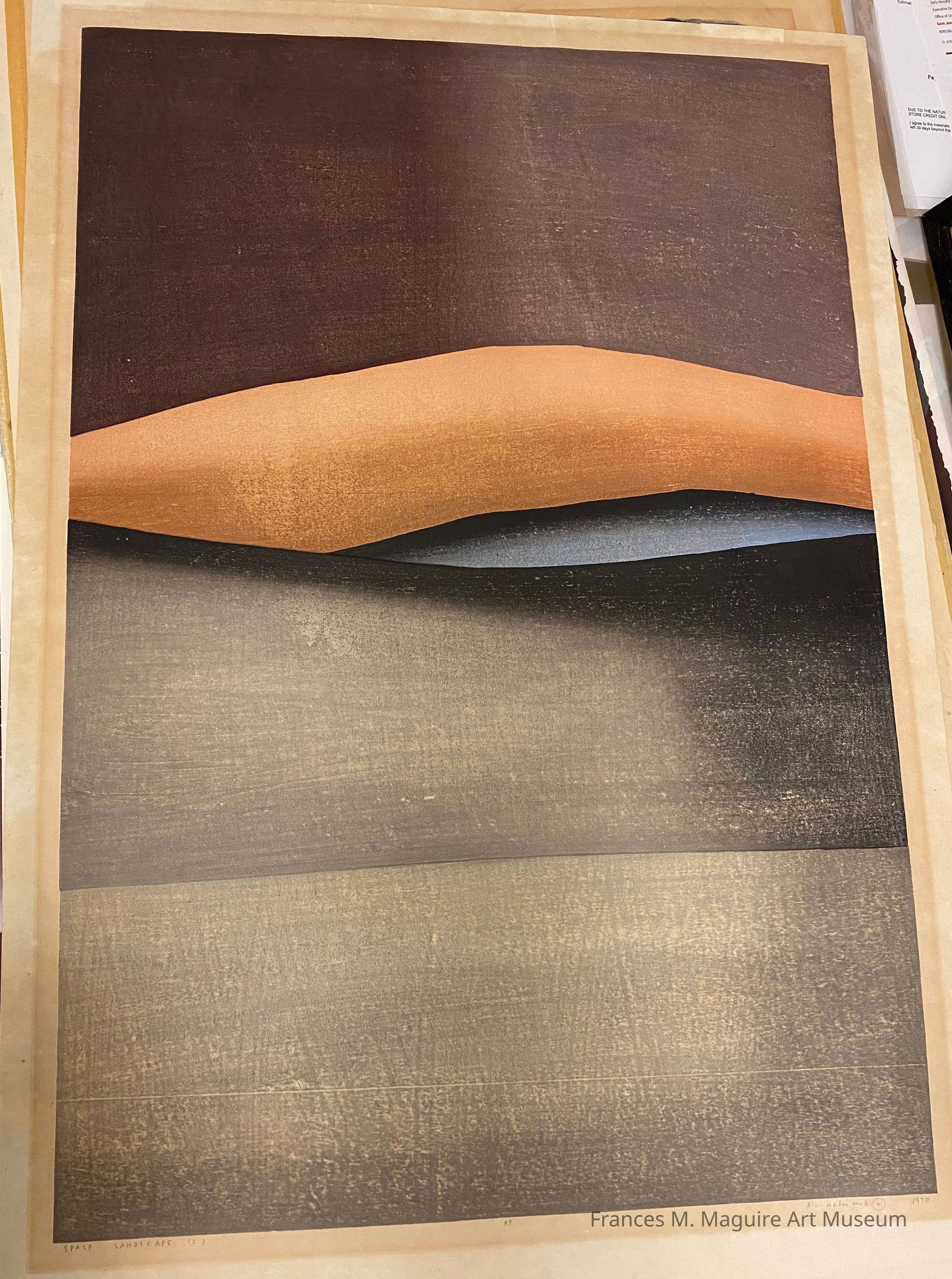 Hand-painted woodblock print of an abstract composition by Japanese-American artist Ansei Uchima.Made/Created