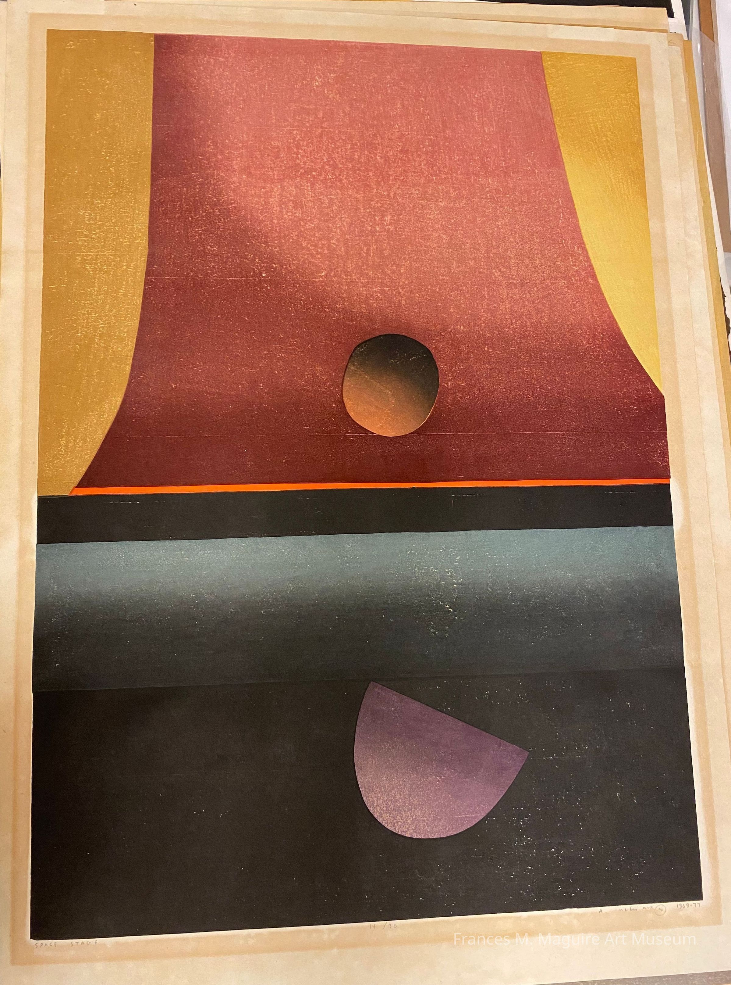 20th-c. hand-painted abstract woodblock print. Ed. 14/30
