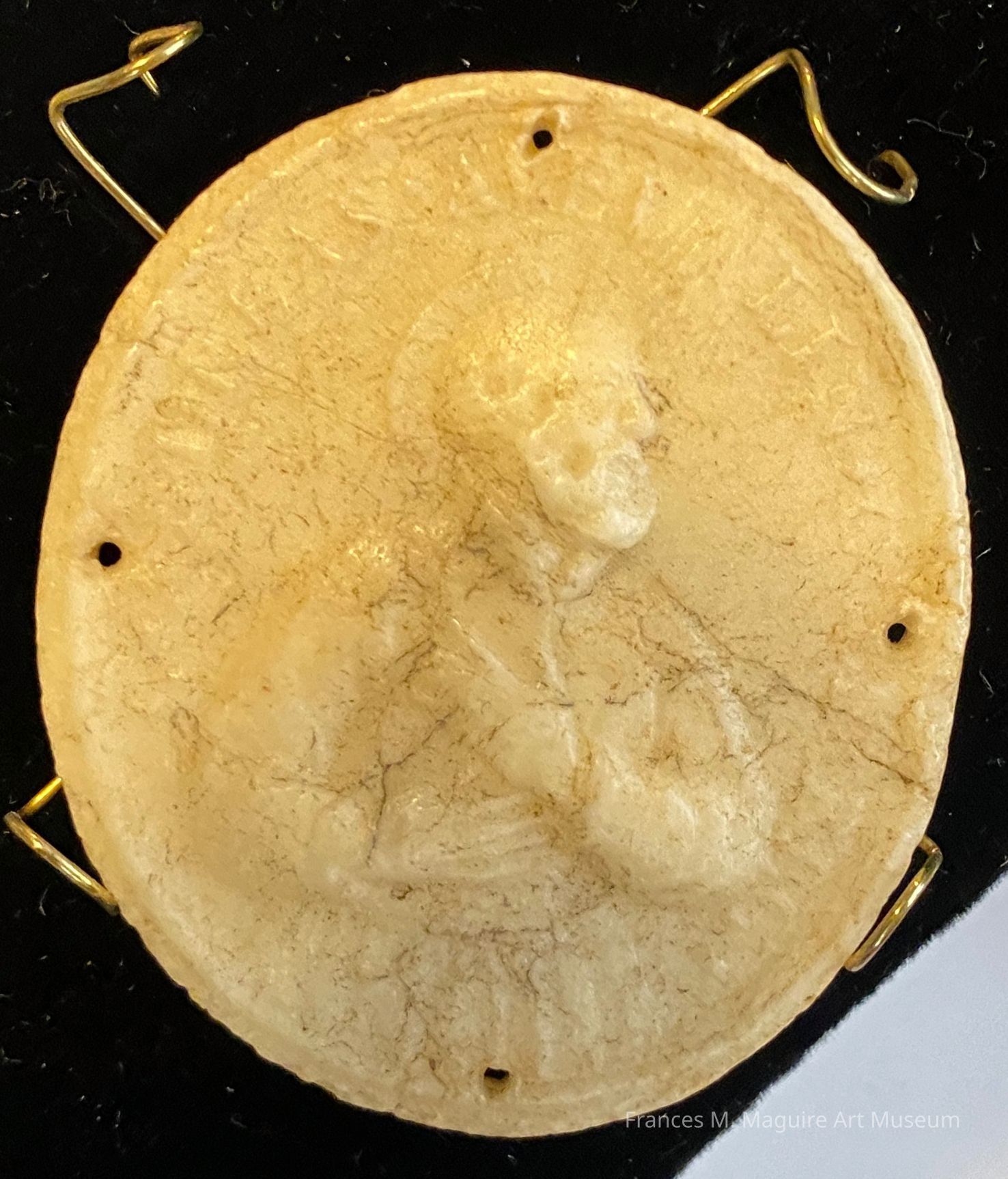 20th-c. Agnus Dei of St. Andrew Avellino. An Agnus Dei is a round, oval wax medallion that was blessed by the pope on the Wednesday after Easter.Made/Created