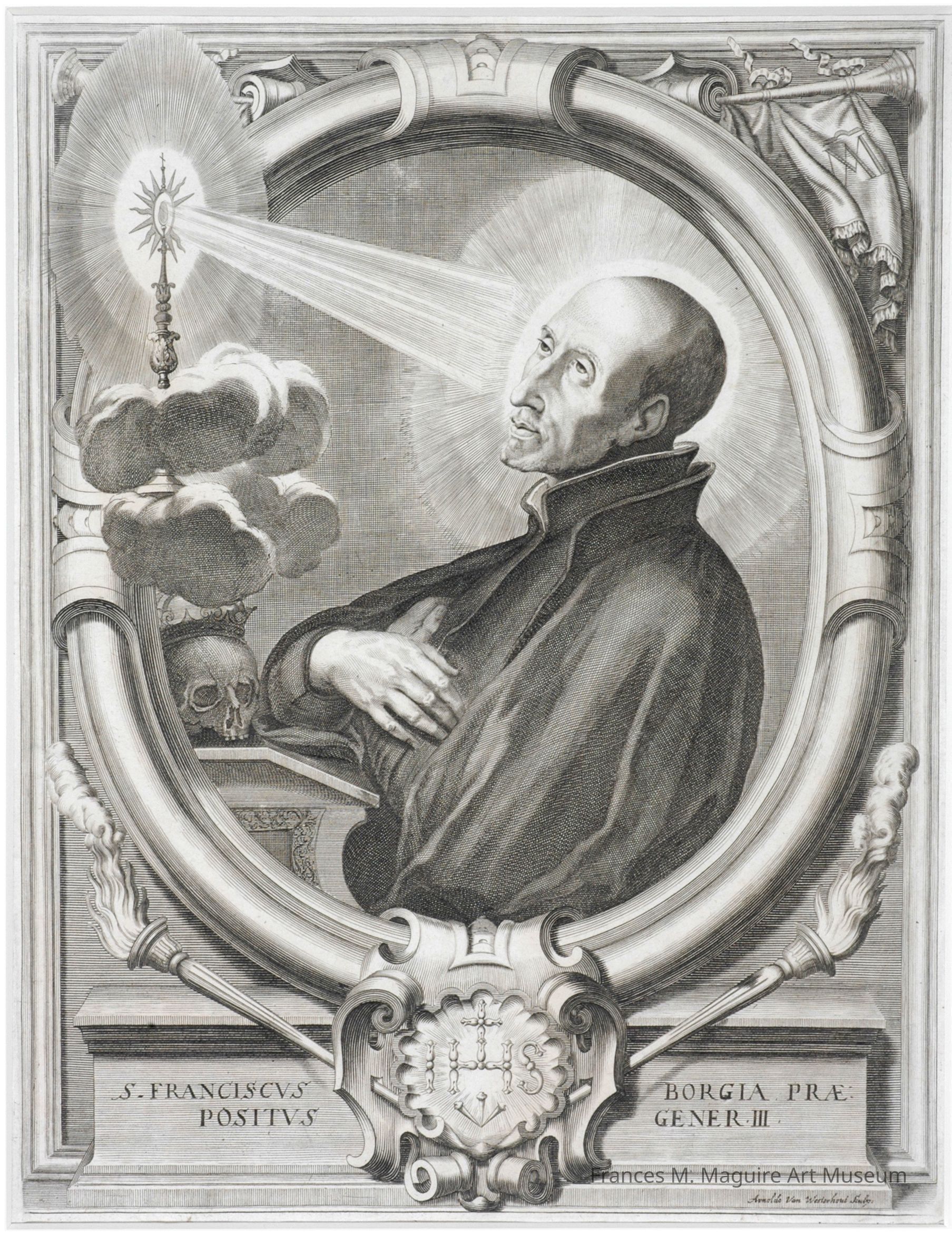 17th- or 18th-c. engraved print of St. Francis Borgia.