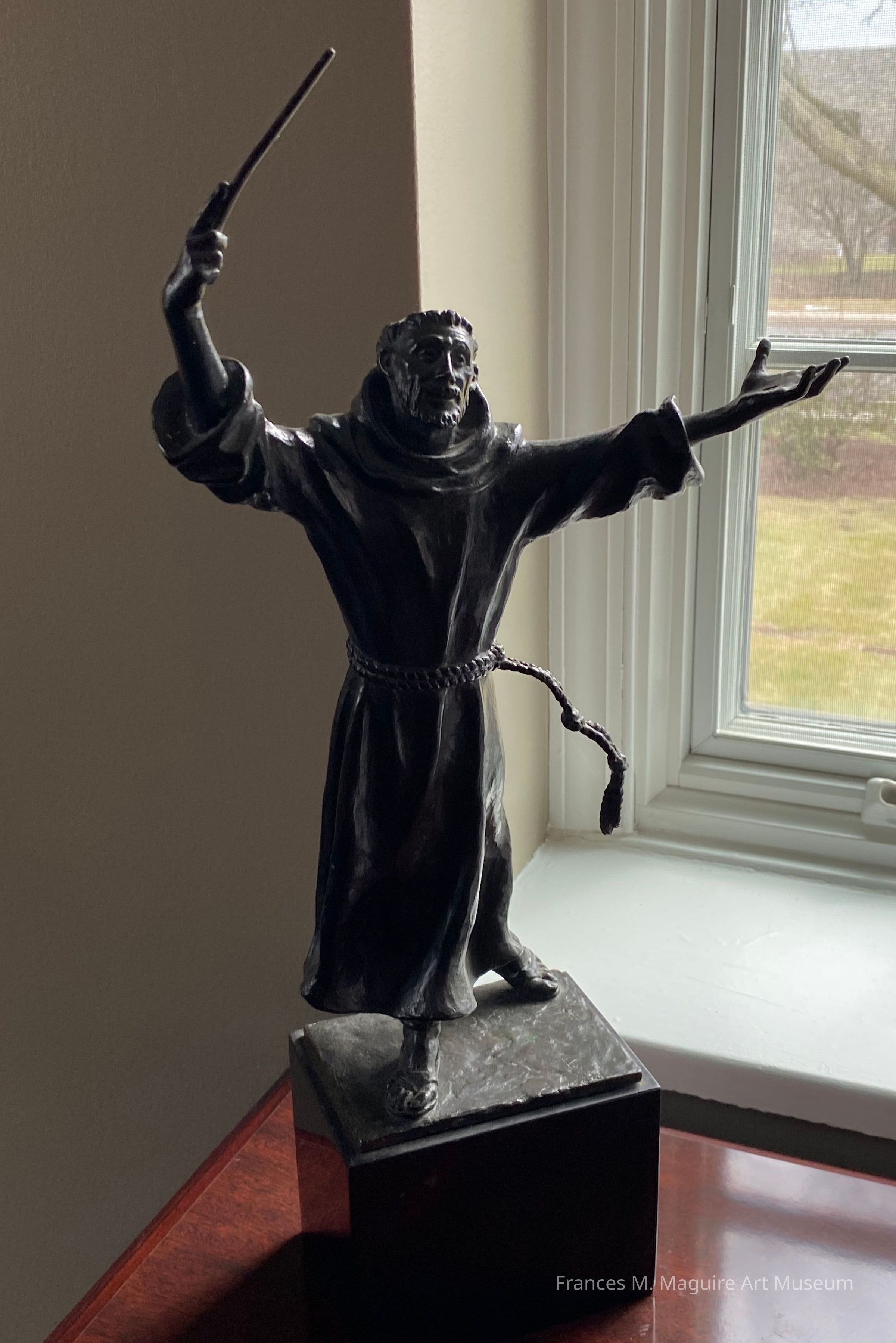 20th-c. bronze sculpture of St. Francis of Assisi figuratively directing a chorus performing his song "Canticle of the Creatures."Made/Created
