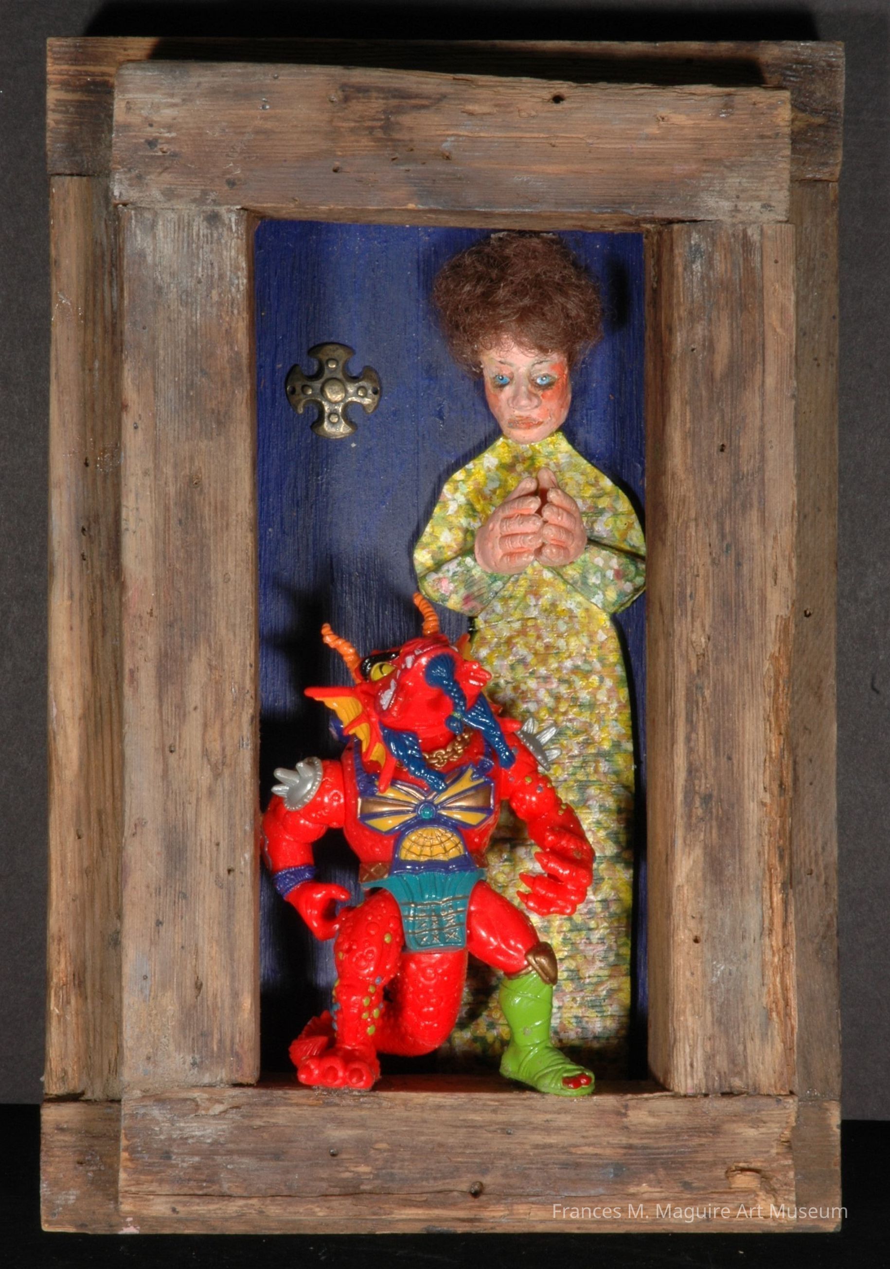 20th-c. mixed media box construction based of a sculpture in the church in the La Roche-Maurice section of Brest, France.Made/Created