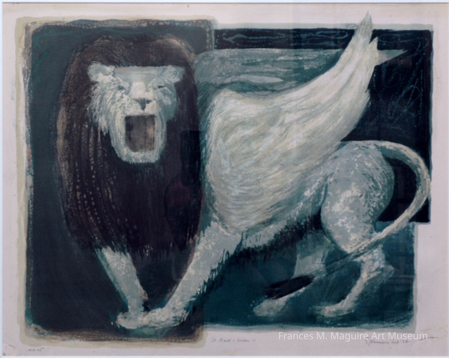 20th-c. color lithograph of St. Mark depicted as a lion. Ed. 25.Made/Created