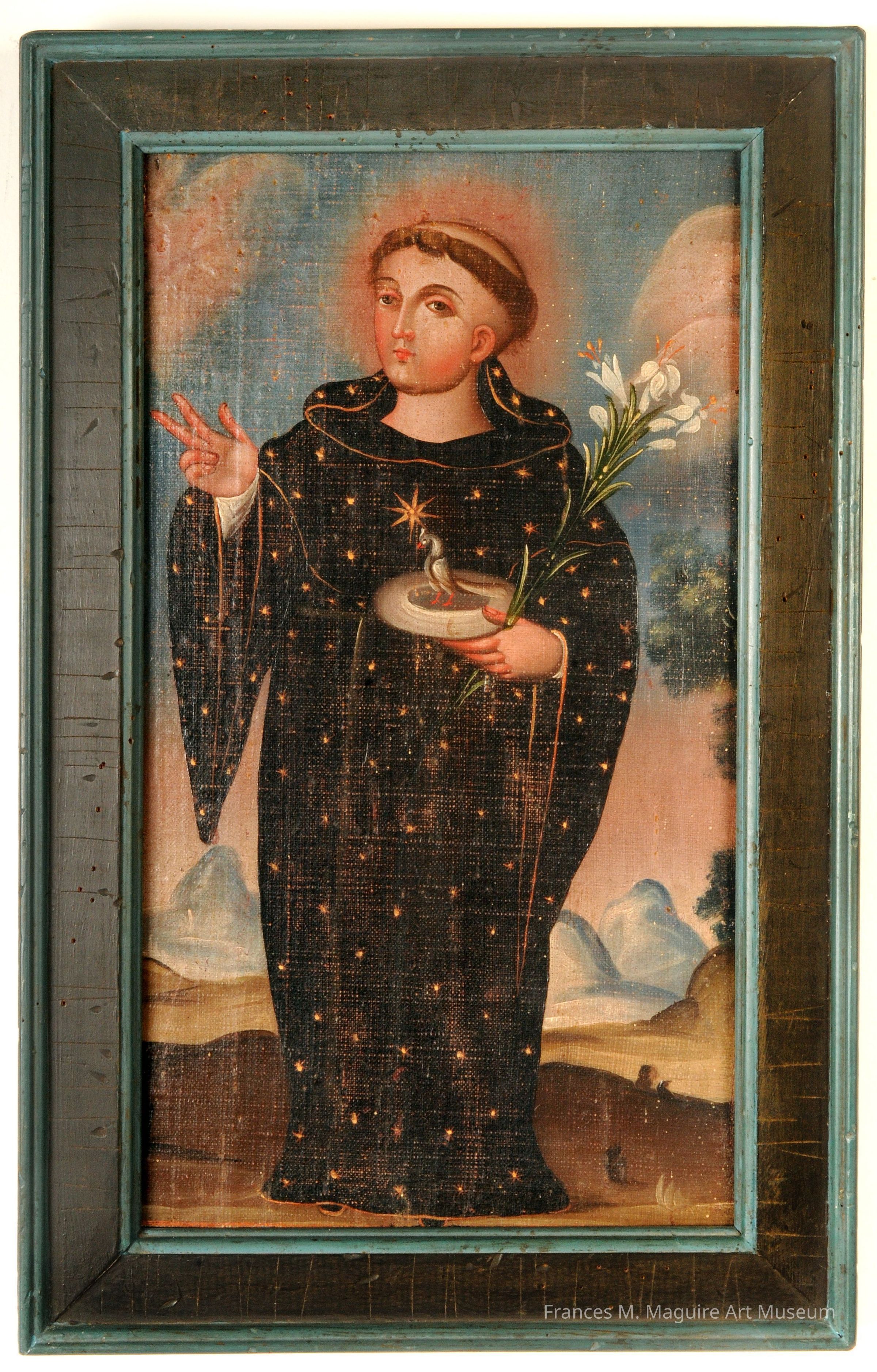 19th-c. Mexican retablo of St. Nicholas of Tolentino.Dimensions
