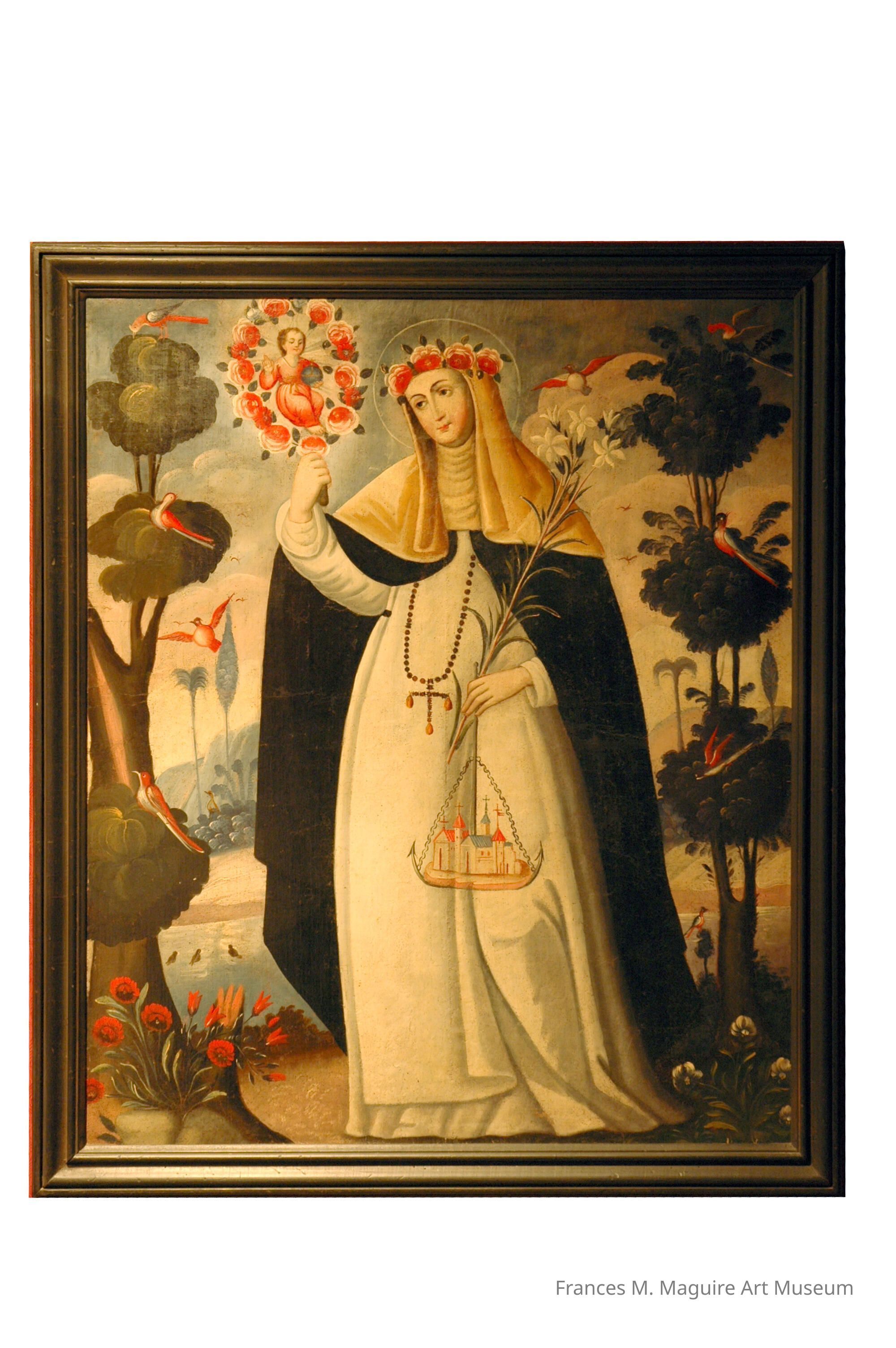 Spanish Colonial painting of St. Rose of Lima, 18th c, Peru.