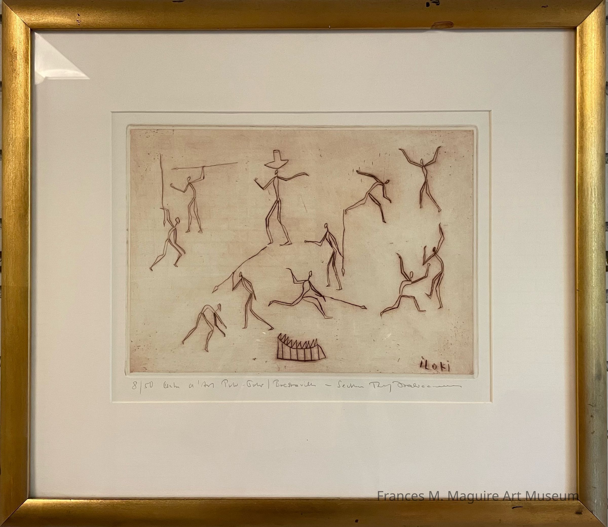 20th-c. lithograph of eleven figures.