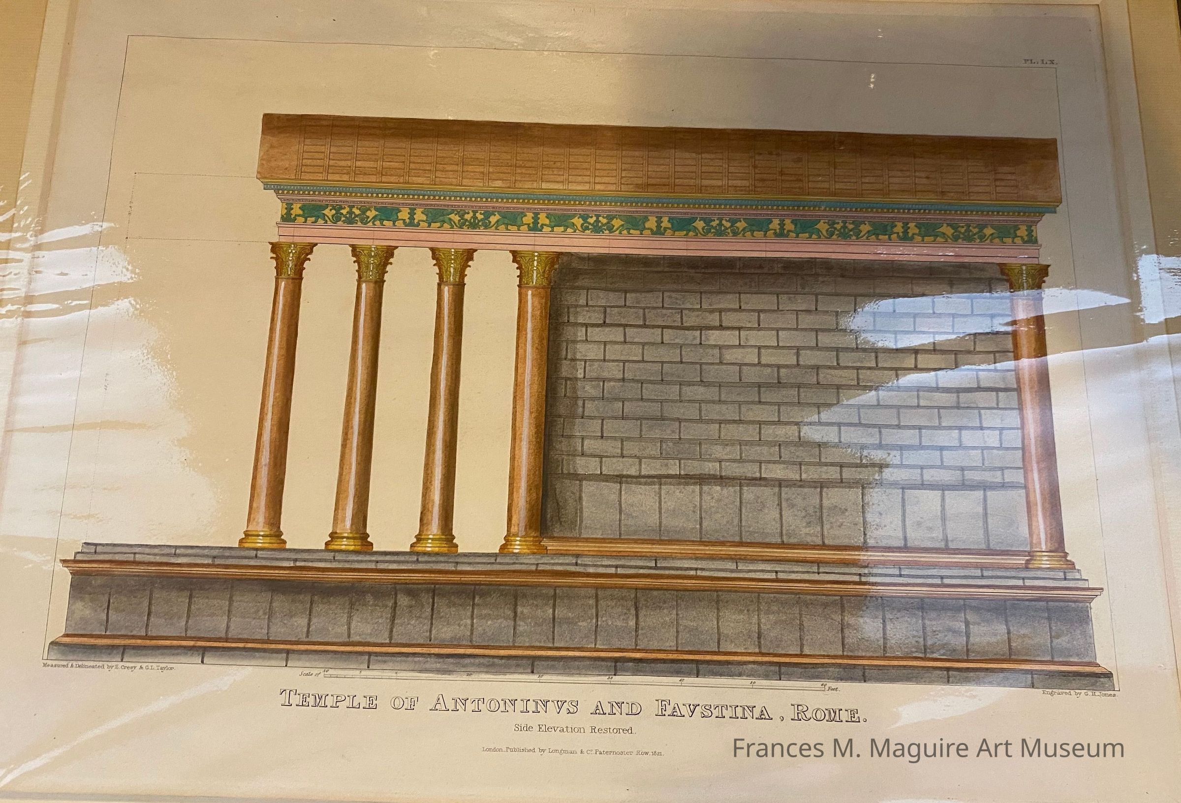 19th-c. engraved architectural print of the Temple of Antoninus and Faustina in Rome, Italy.Made/Created