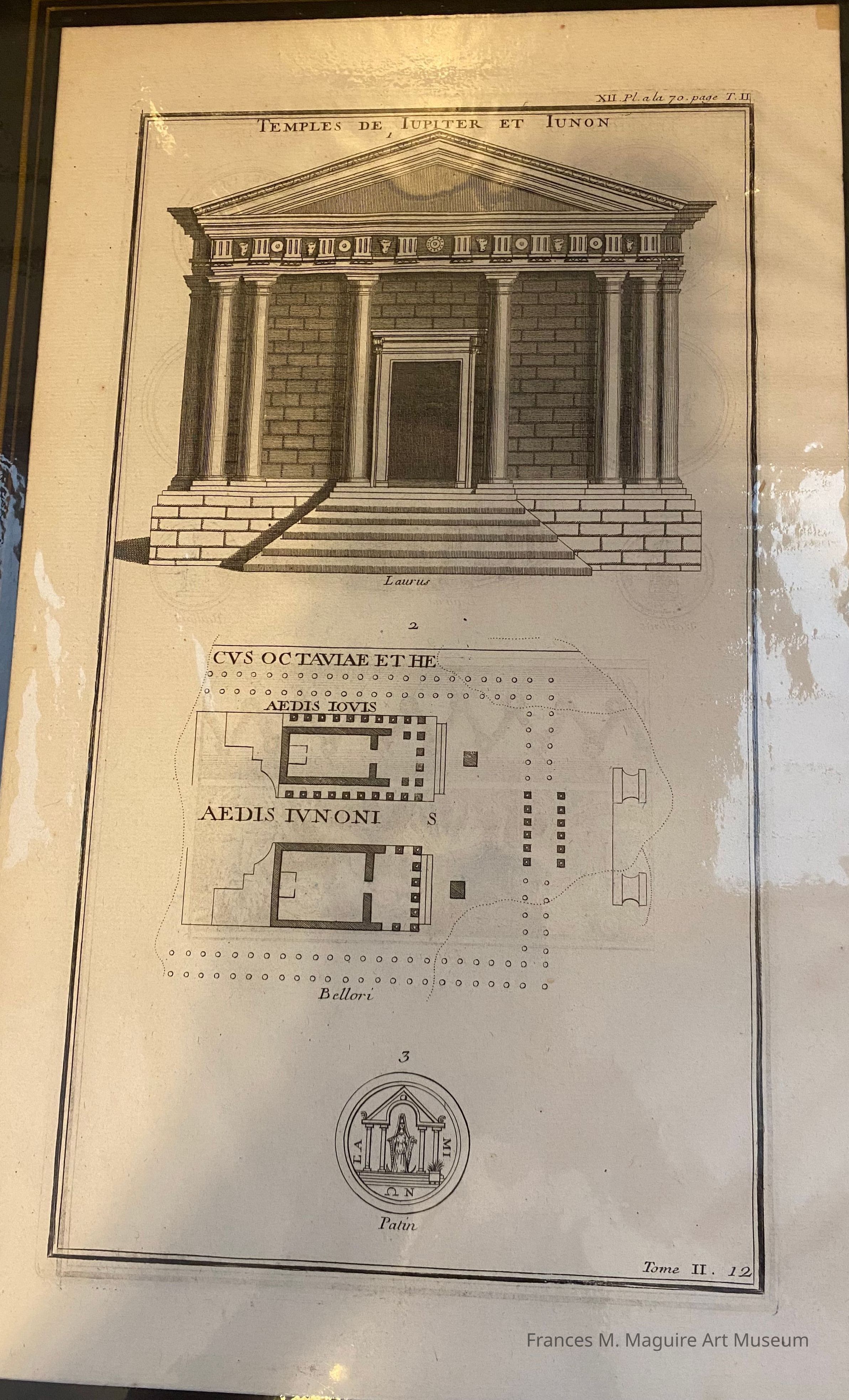 Engraved architectural print of the Temples of Jupiter and Juno.