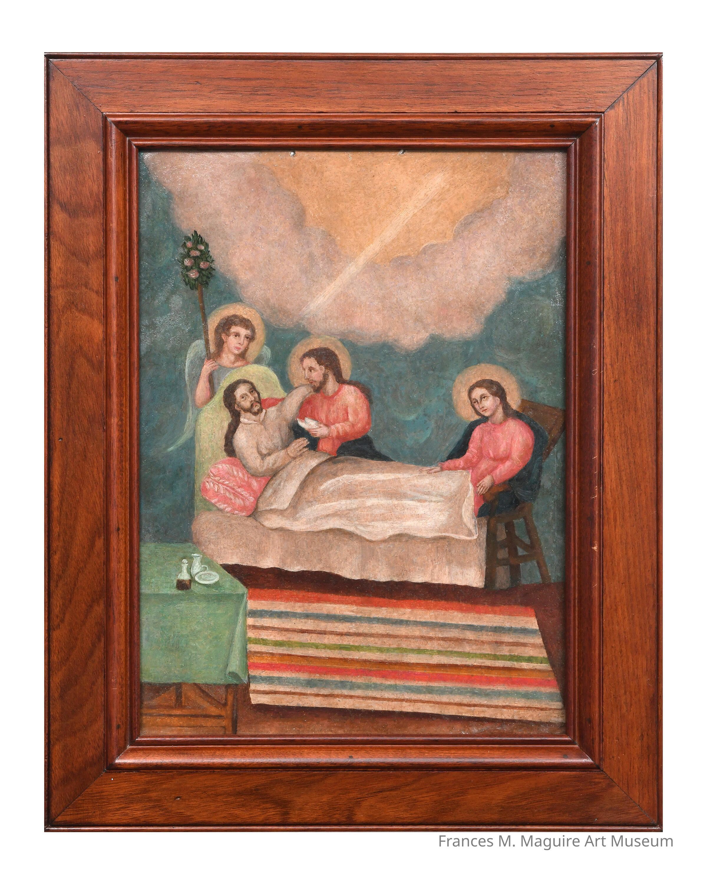 19th century Painting of The Death of St. Joseph (Retablo).