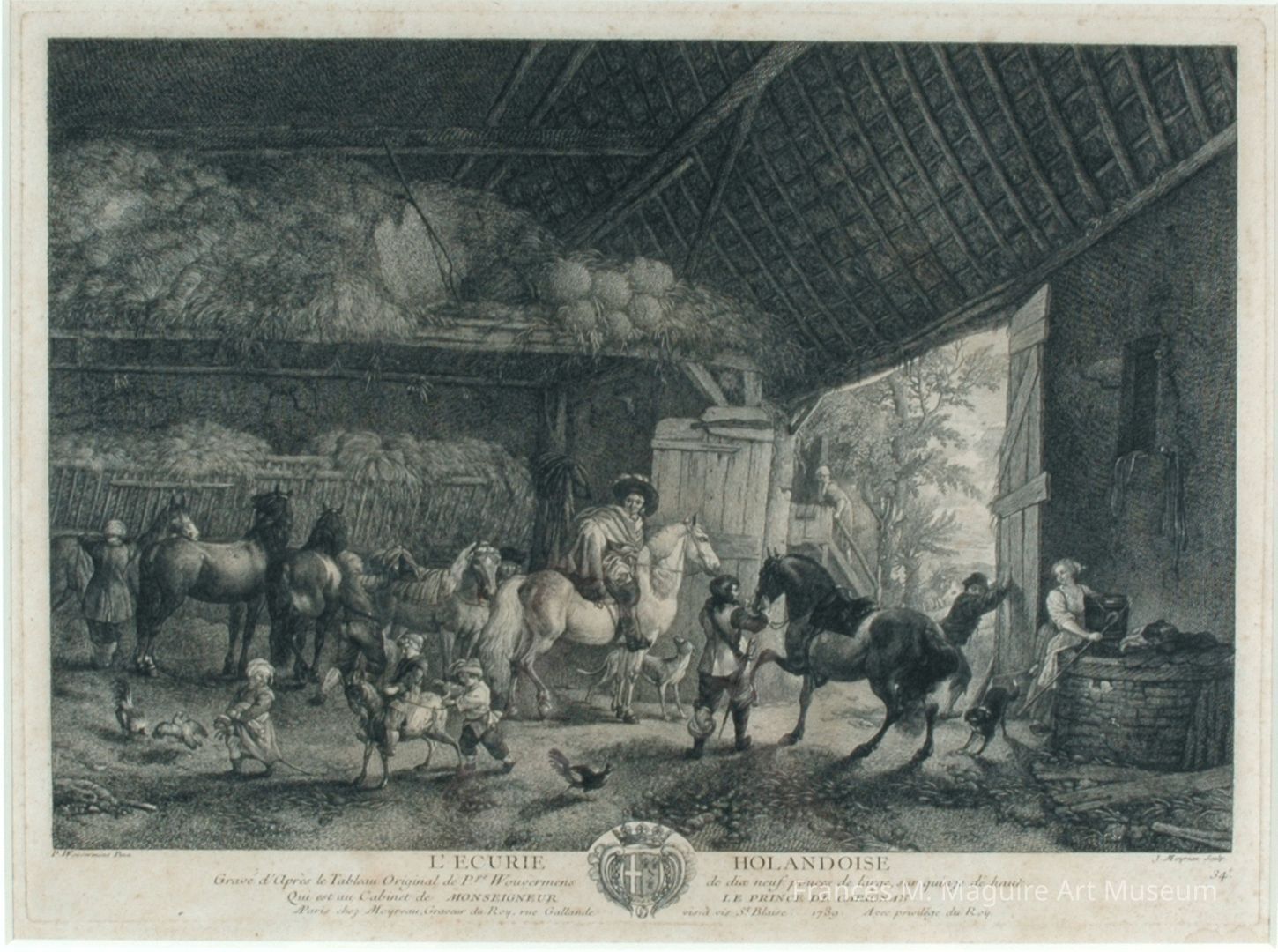 17th-c. print of a stable, after a painting by Philips Wouwerman.Made/Created