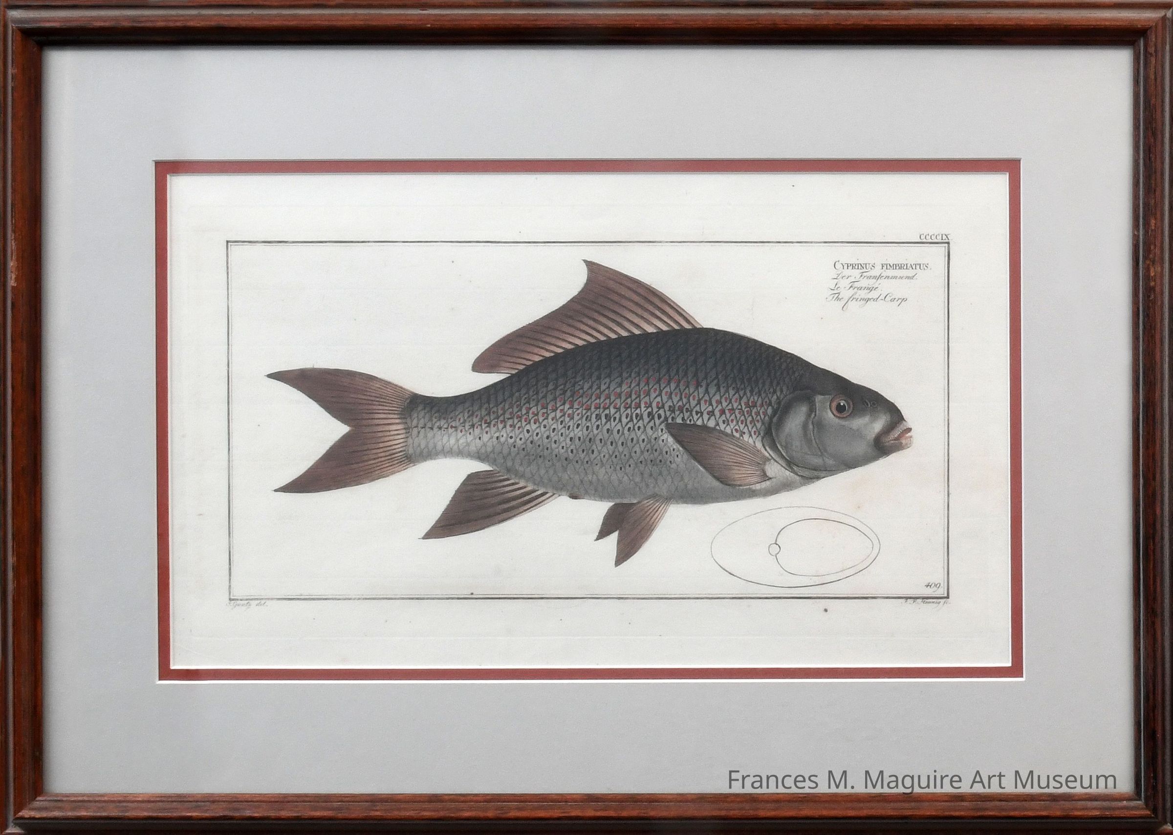 18th-c. hand-colored engraving of a fringed carp or fringed-lipped peninsula carp published in the book, Allgemeine Naturgeschichte der Fische (General Natural History of Fishes), written by Marcus Elieser Bloch.Made/Created