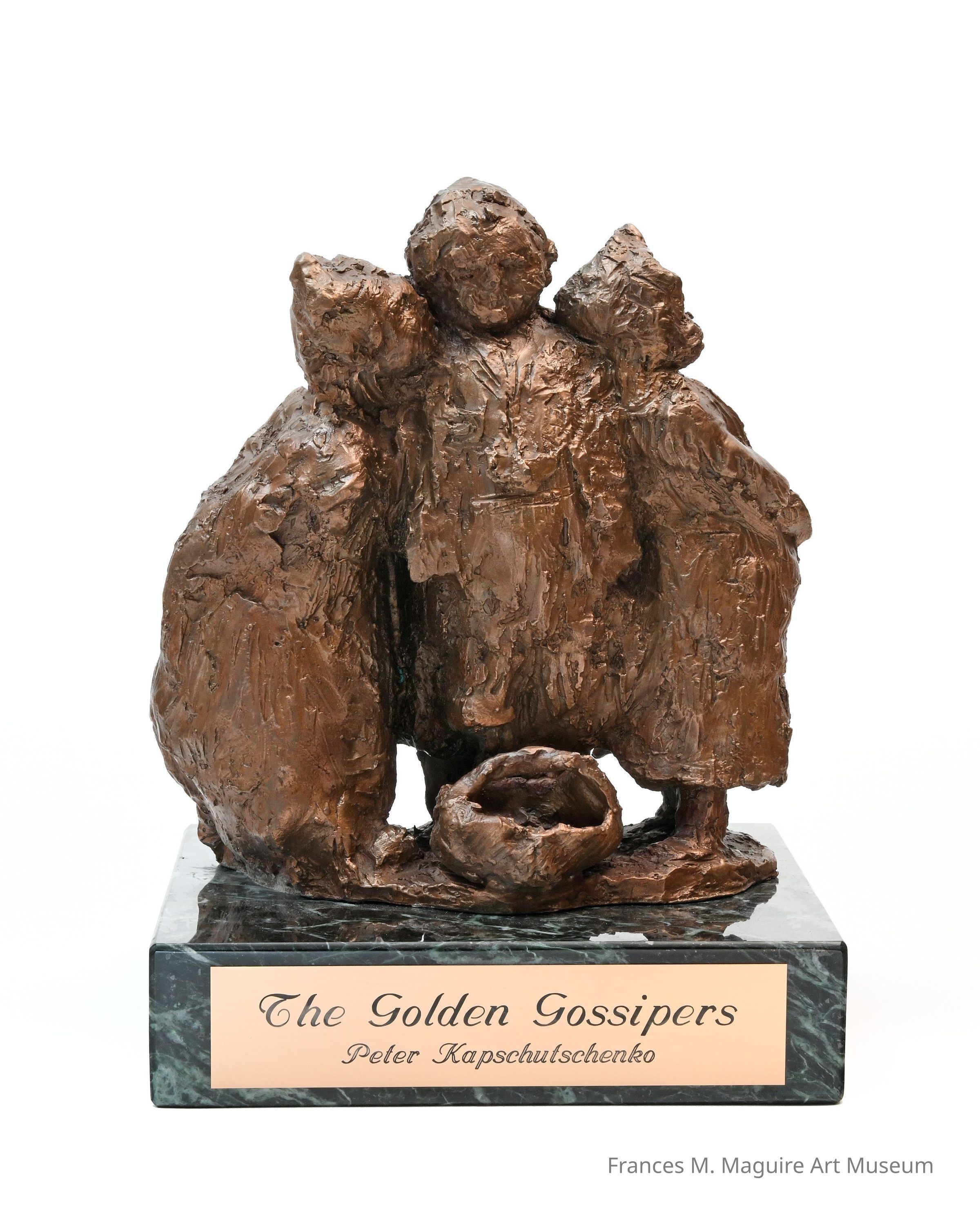 Bronze sculpture with gold patina mounted on a marble base.