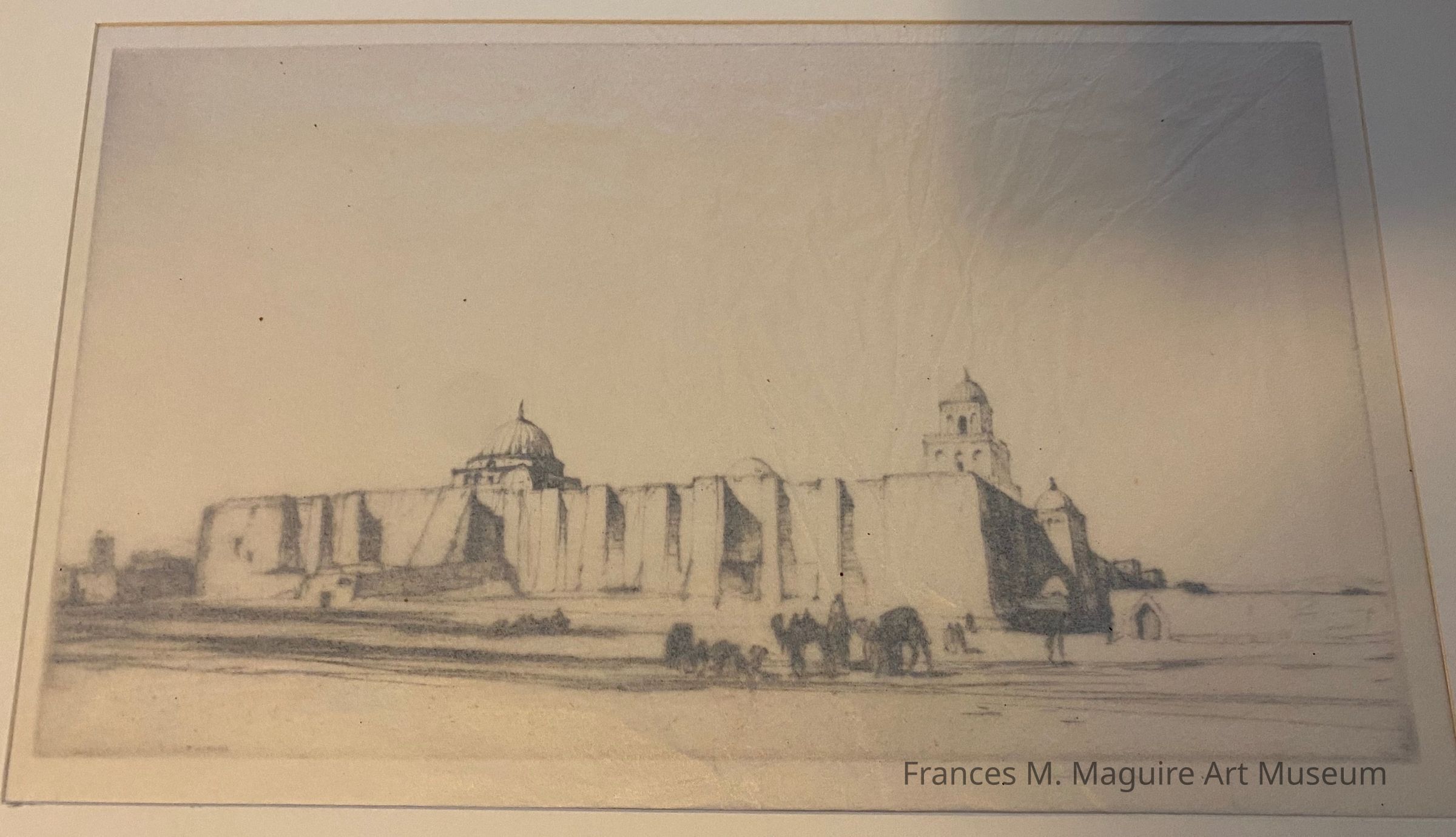 20th-c. drypoint etching of the Grand Mosque in Kairouan, Tunisia.Made/Created