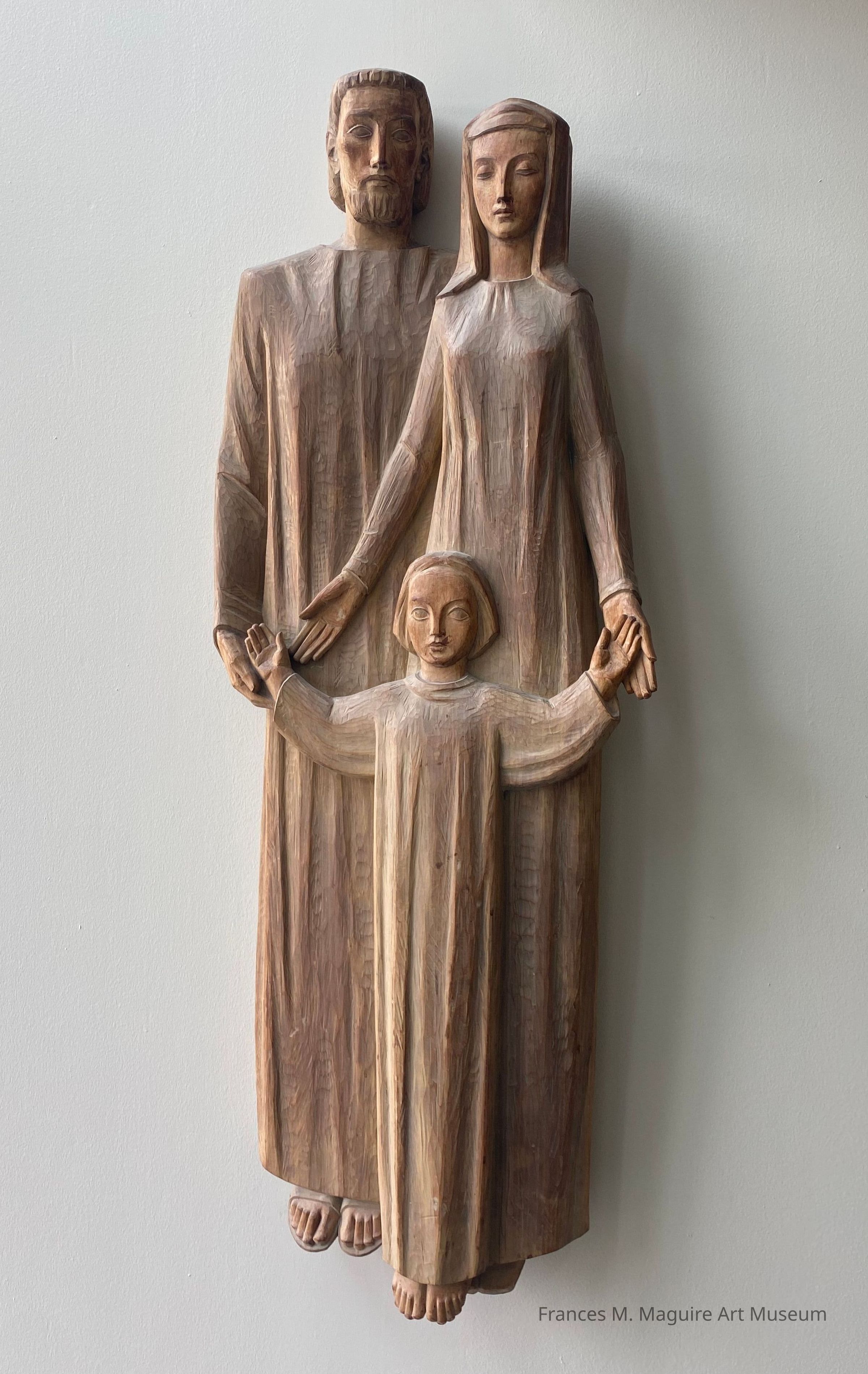 20th-c. wood sculpture of the Holy Family.Made/Created