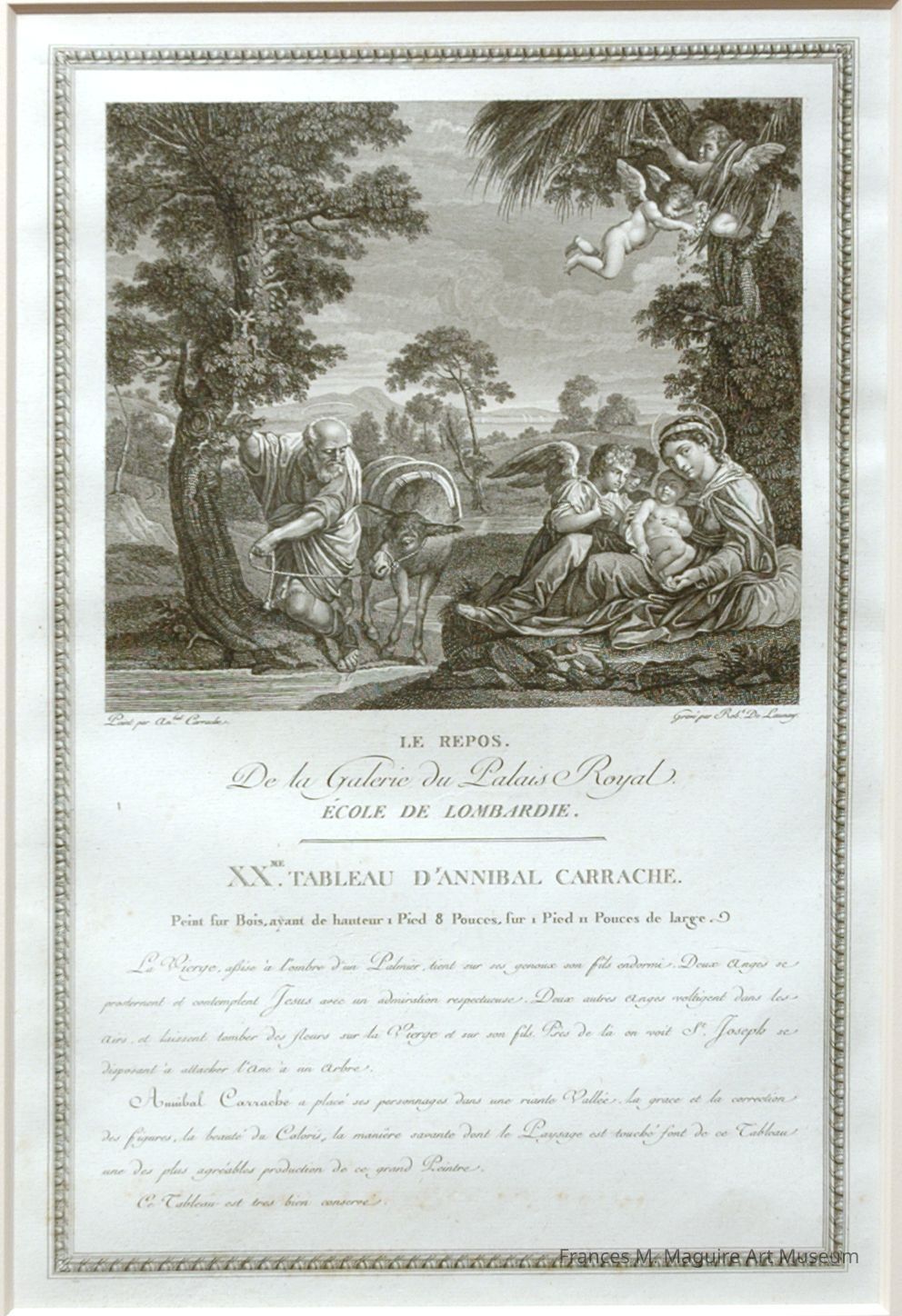 18th-c. print of the Holy Family resting on their journey into Egypt, after a painting by Annibale Carracci.
