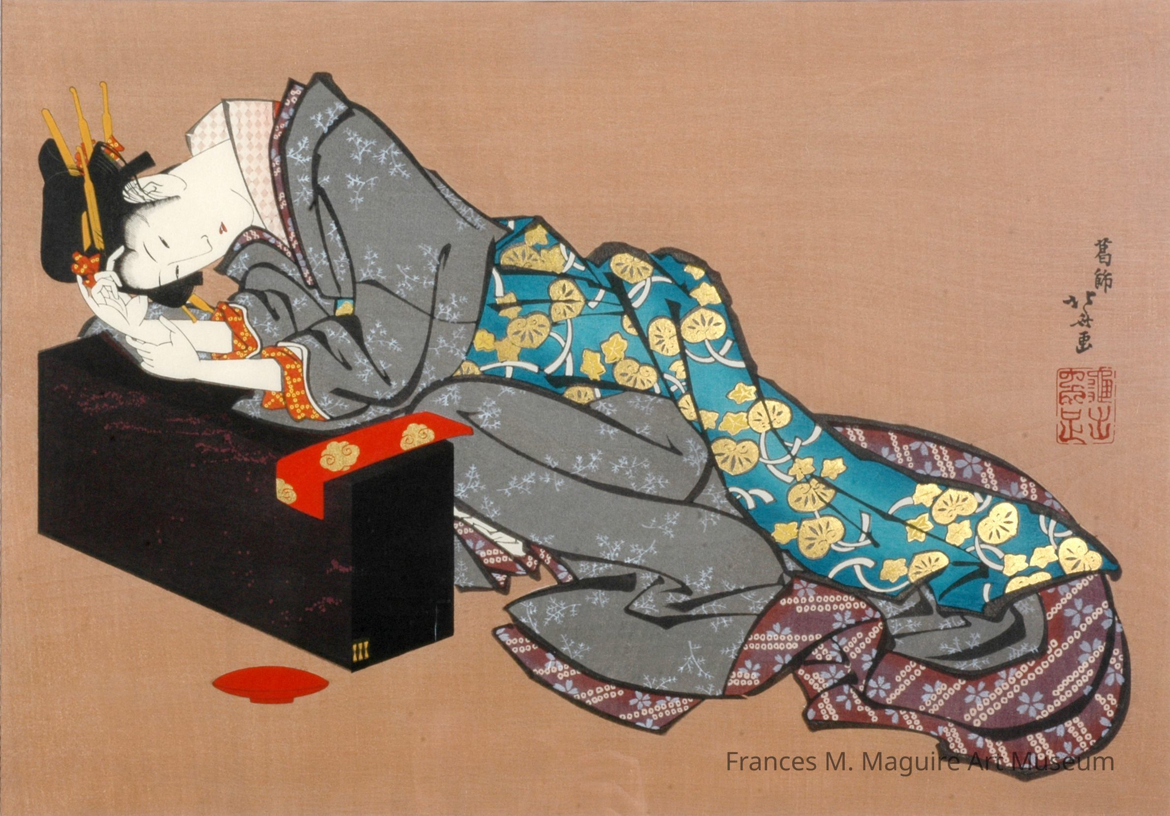 19th-c. woodblock print titled "Tipsy Beauty"Made/Created