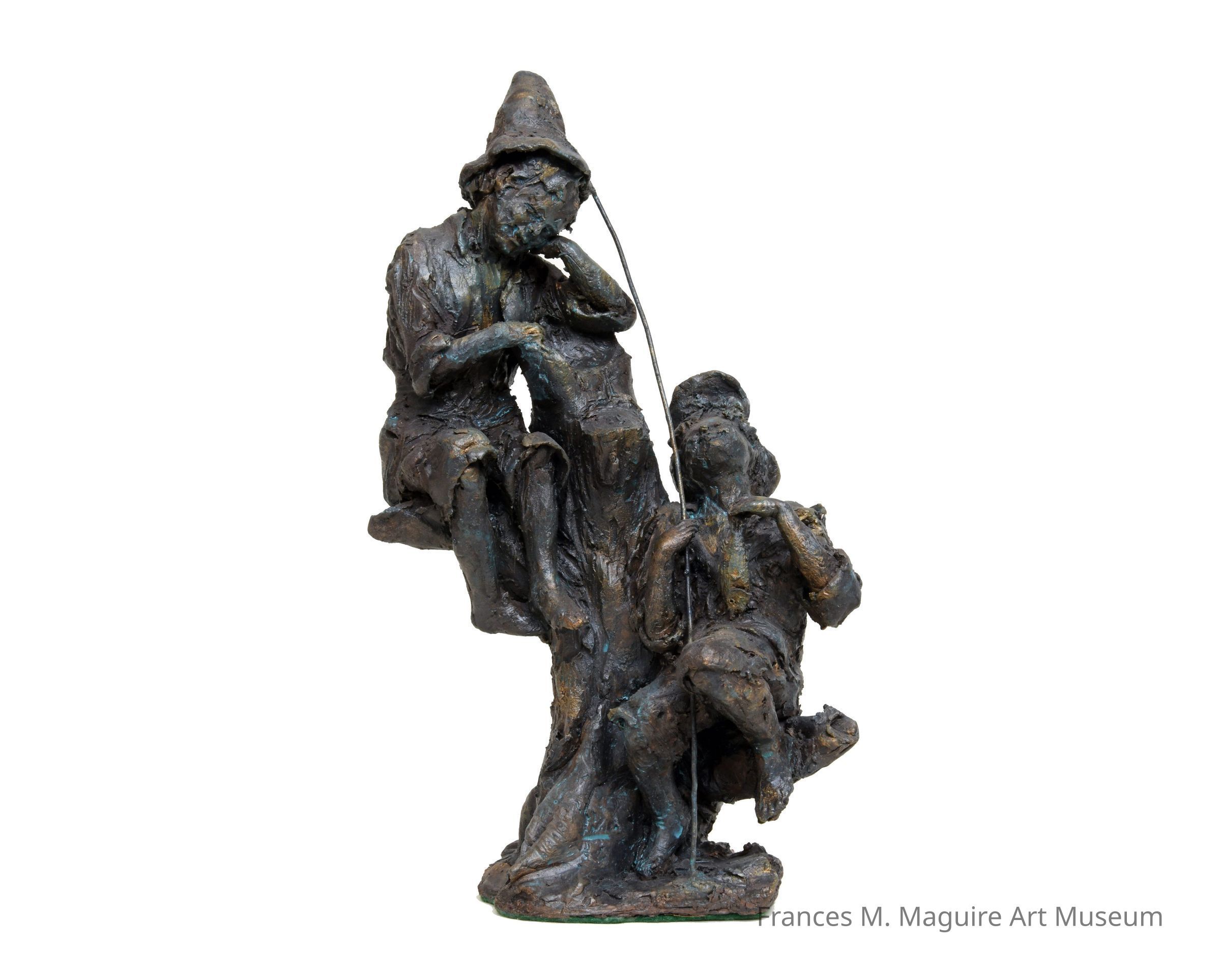 20th-c. terracotta sculpture of two boys fishing.Made/Created