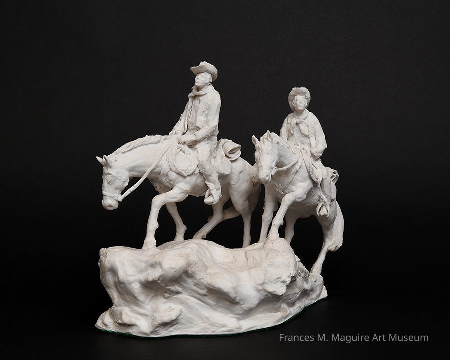 Porcelain sculpture of two men on horseback.