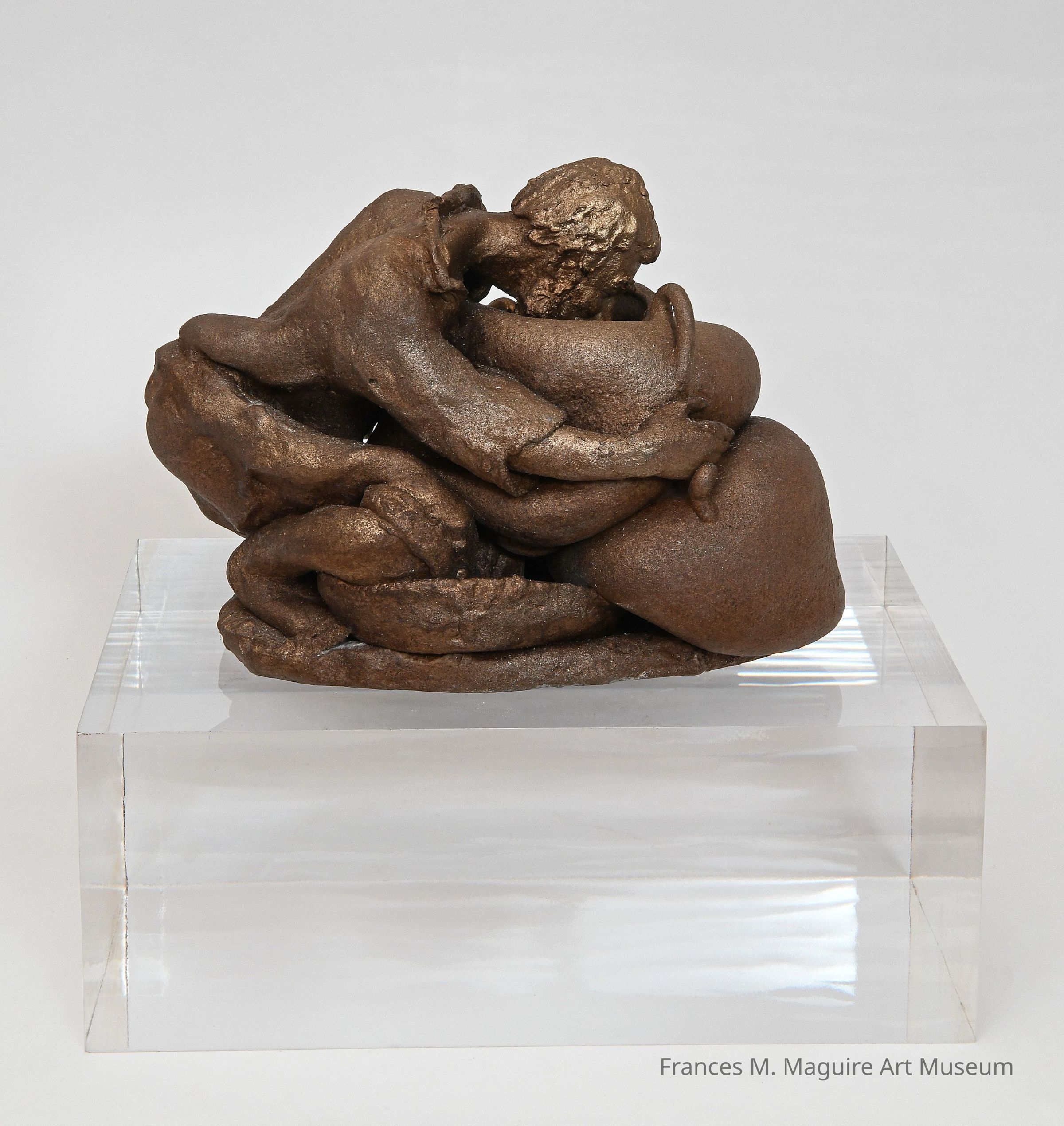 20th-c. sculpture of a man with broken pots.