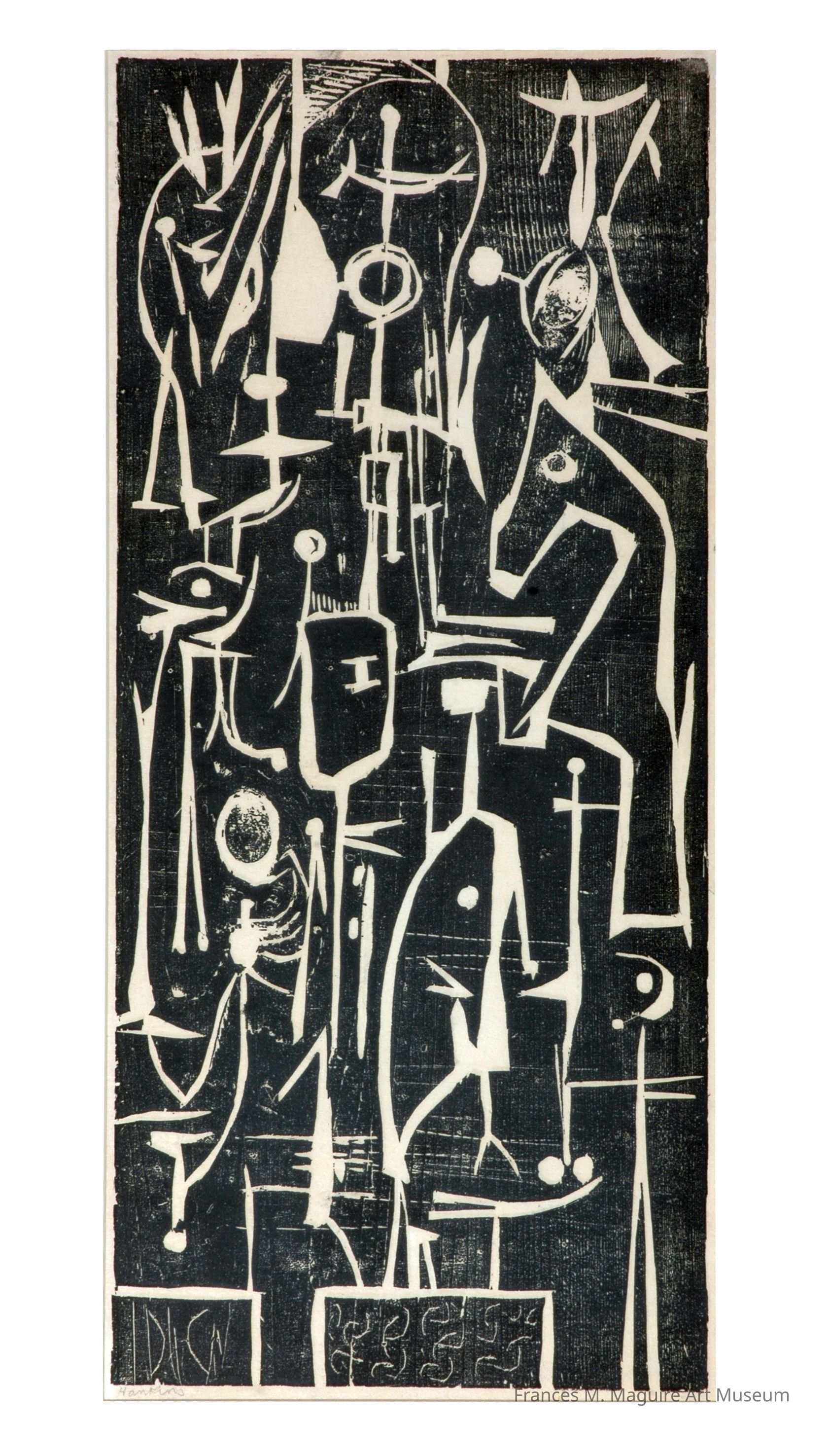 20th-c. abstract woodcut print.