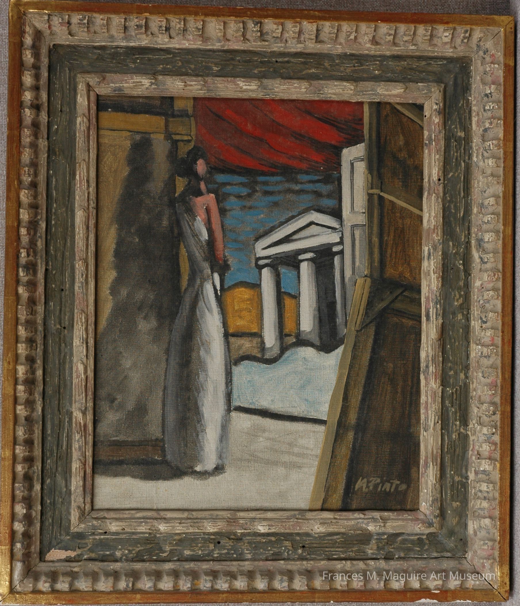 20th-c. painting of a woman looking at a Greek Temple.