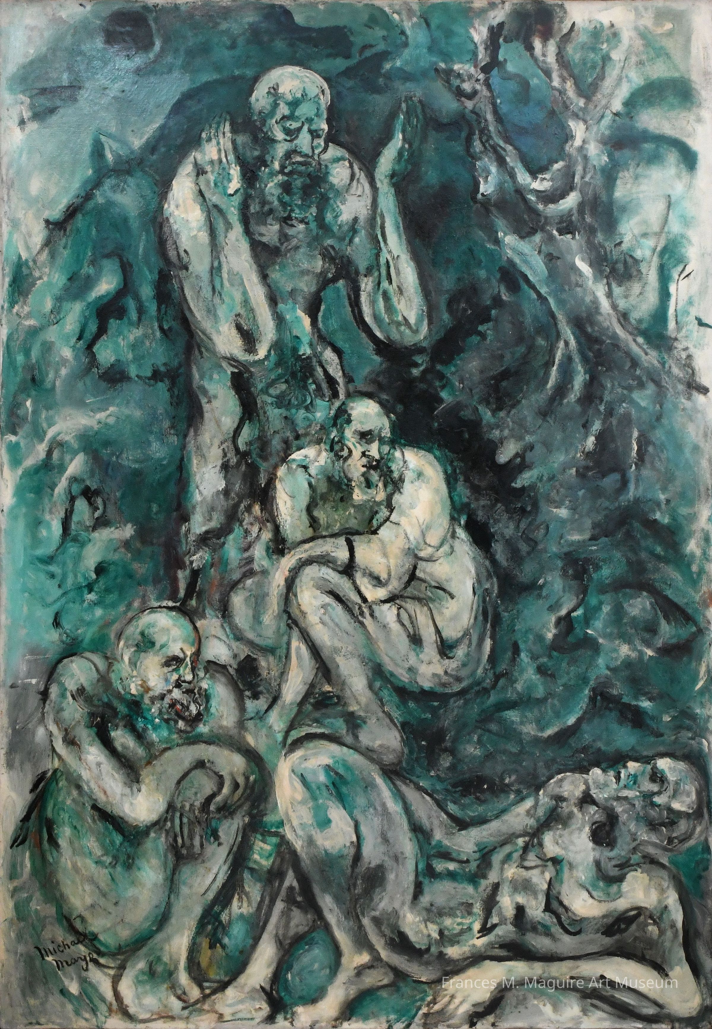20th-c. oil painting of four nude male figures.Made/Created