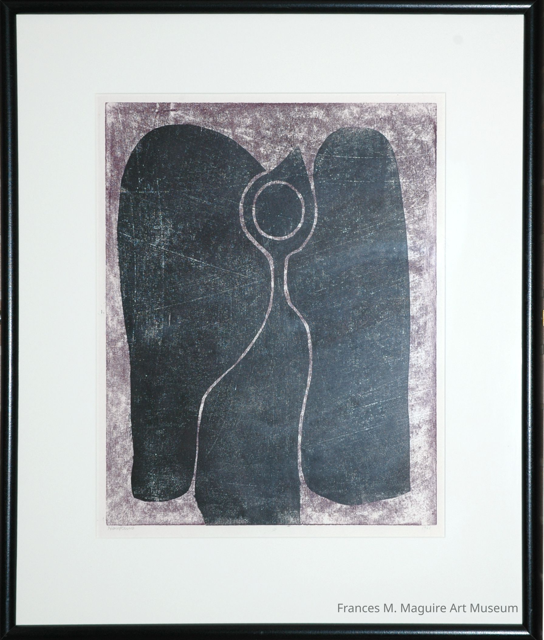 20th-c. woodcut of a figure with wings (possibly a bird or angel).Made/Created