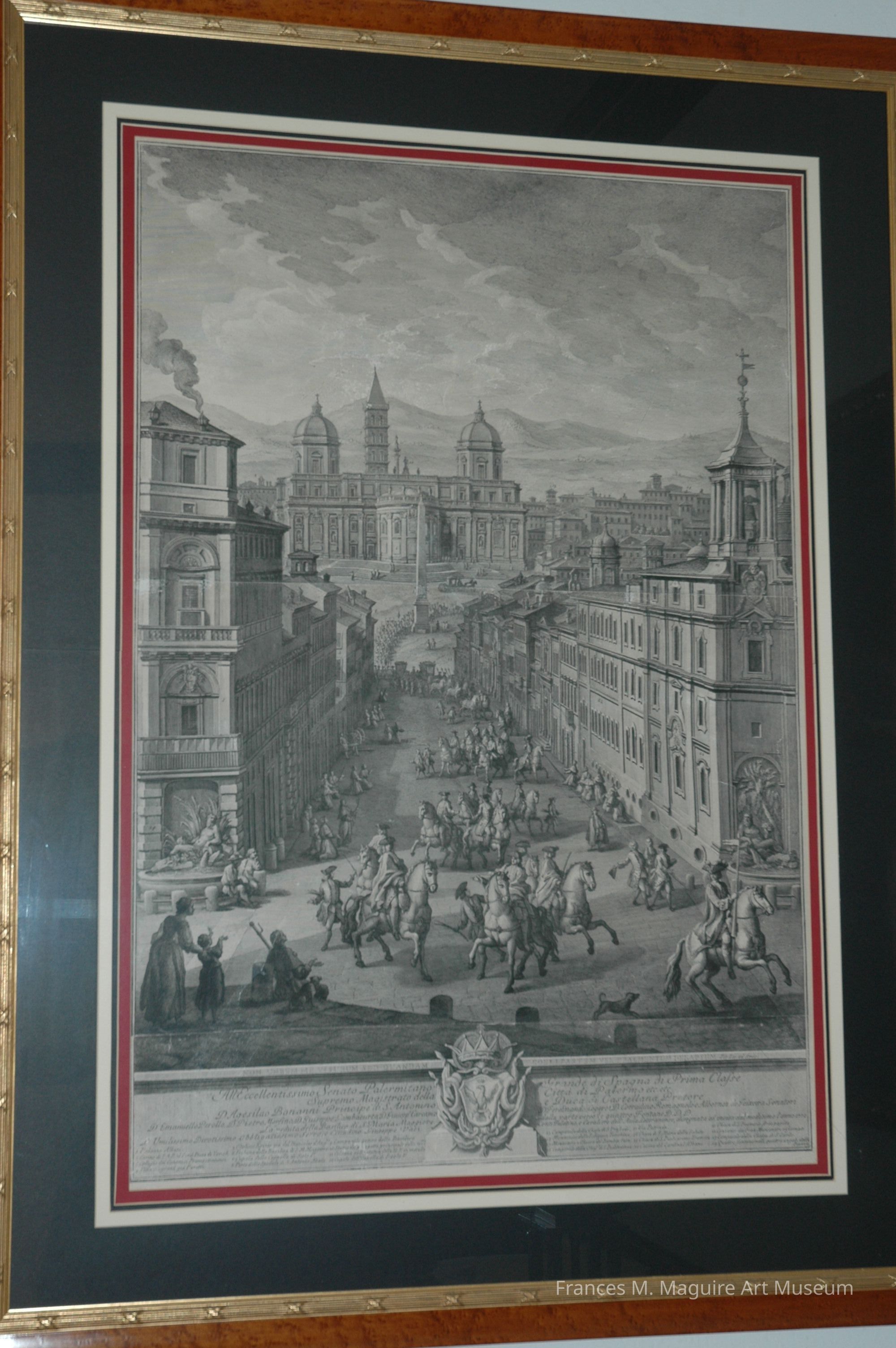 18th-c. Italian print titled, "La Veduta della Basilica di Santa Maria Maggiore dalla parte verso le Quattro Fontane" (View of the Basilica of Santa Maria Maggiore from the side towards the Four Fountains).Made/Created