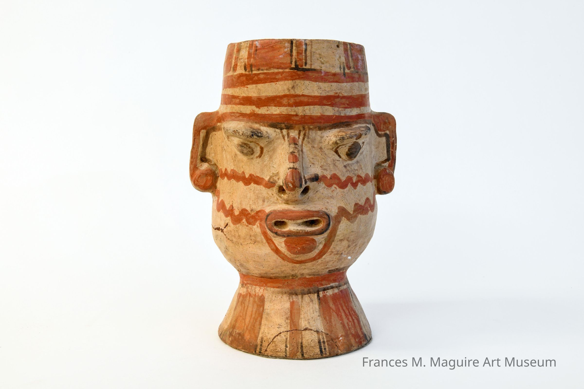 Painted red clay head-form vessel.Made/Created